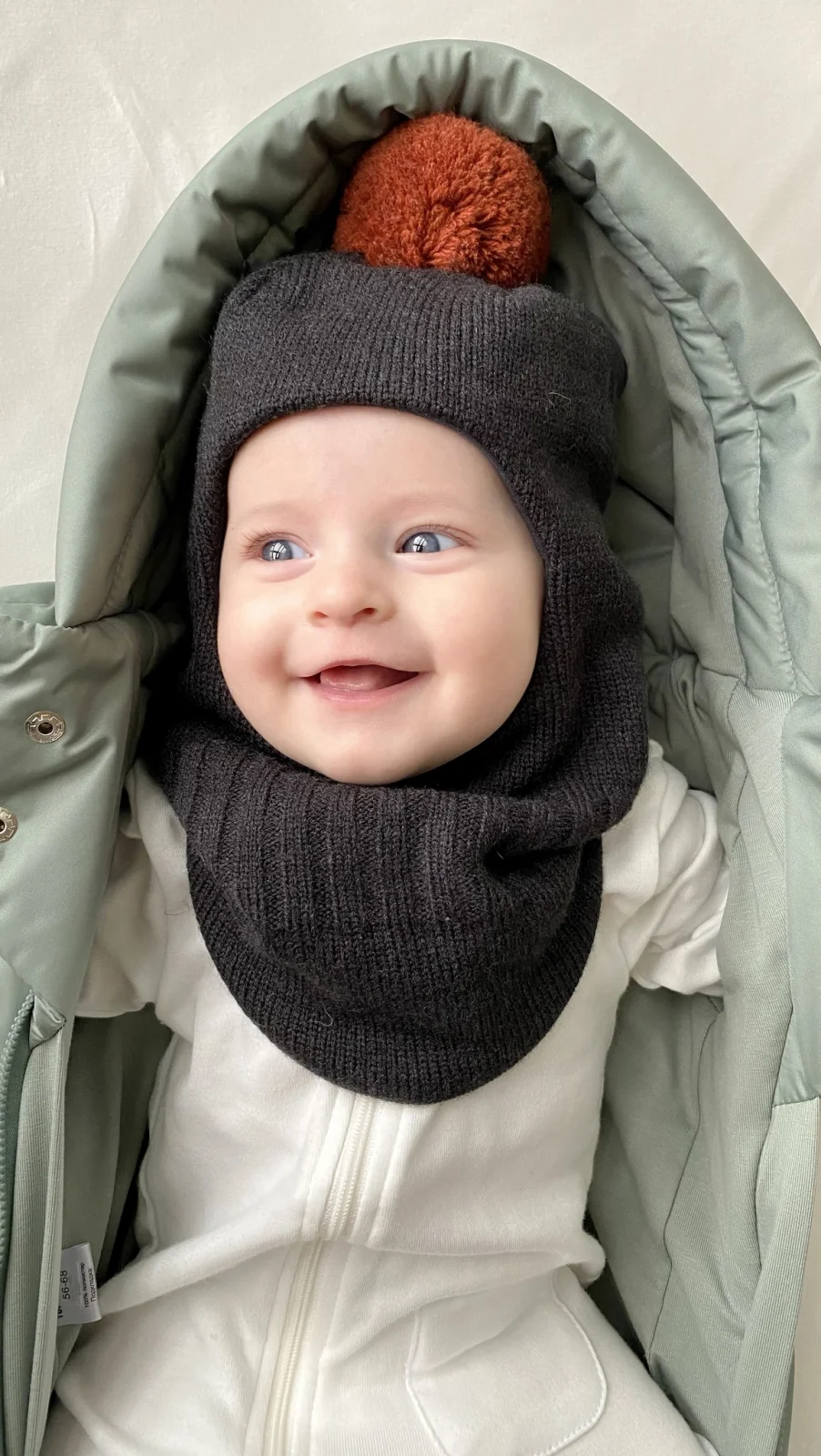 Балаклава зимняя с помпоном, Графит