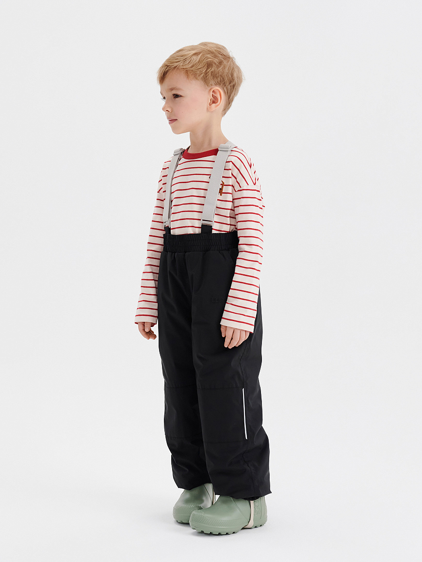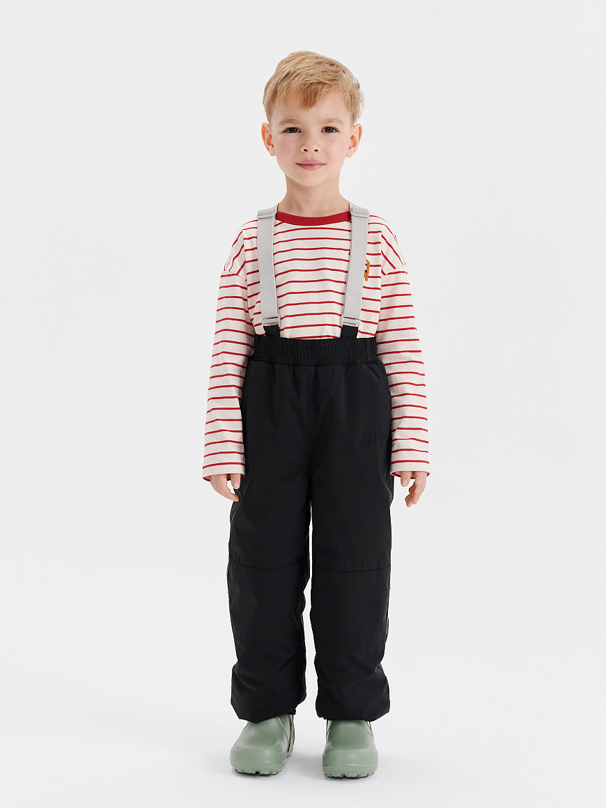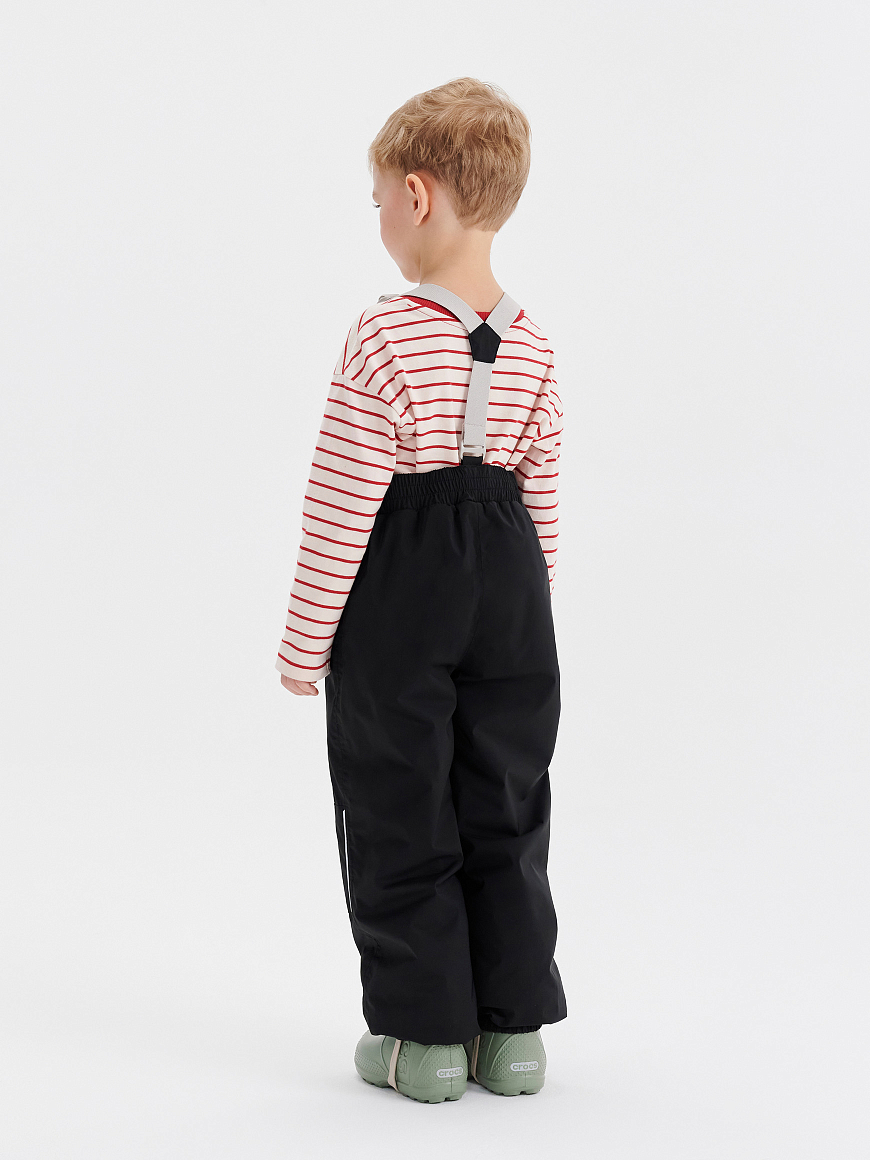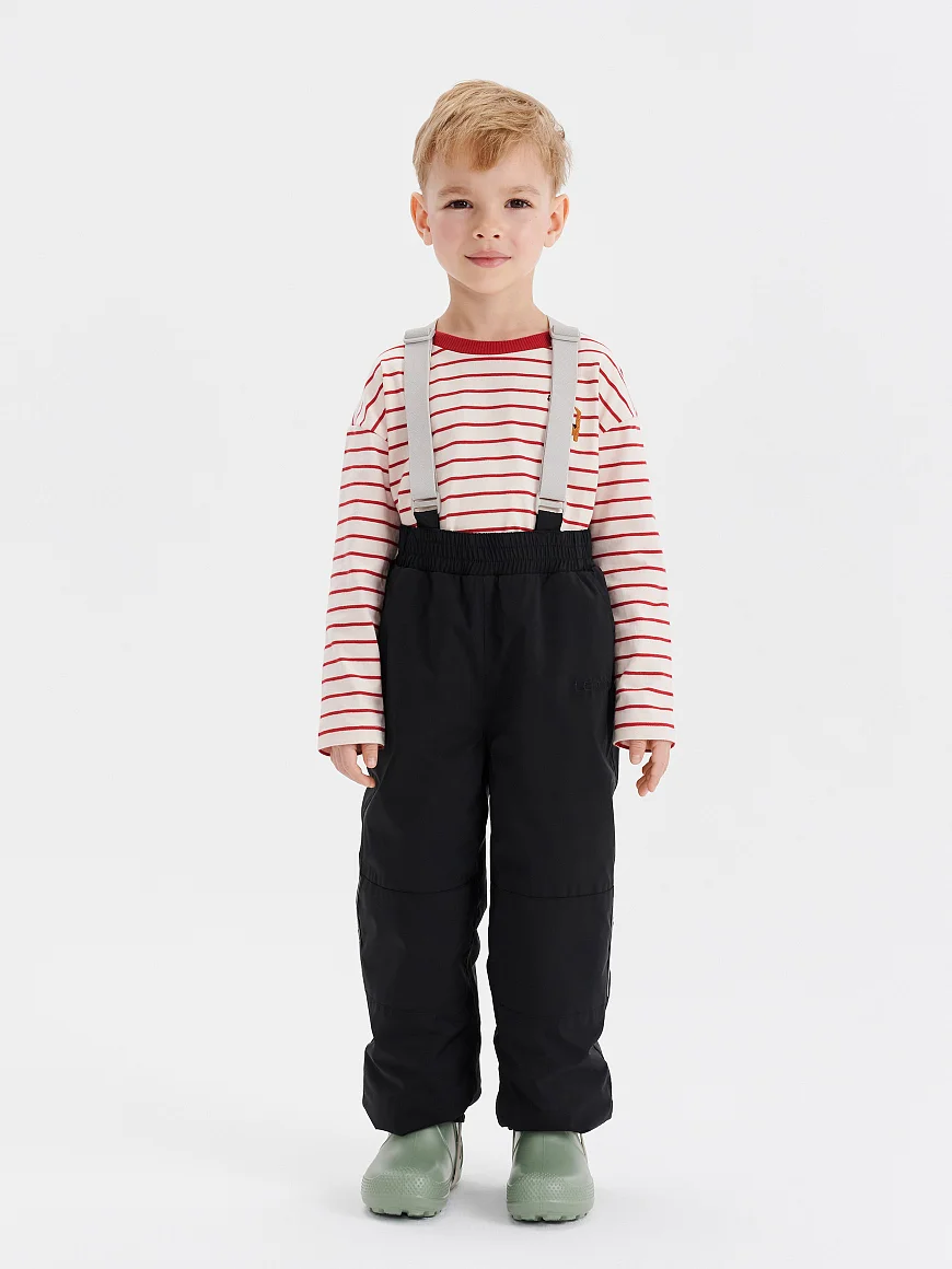 Правильная высокая посадка и свободный крой обеспечивают комфорт, а ветрозащитная и водоотталкивающая ткань защищает от продувания и влаги. Зона колен усилена дополнительной износостойкой тканью. Брюки деликатно садятся на любую фигуру благодаря регулируемой утяжке на поясе, а съёмные регулируемые подтяжки исключат сползание даже при активных играх.