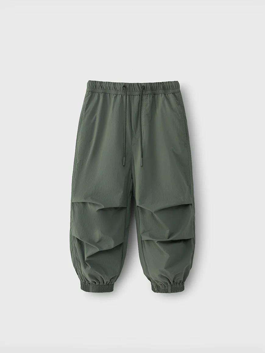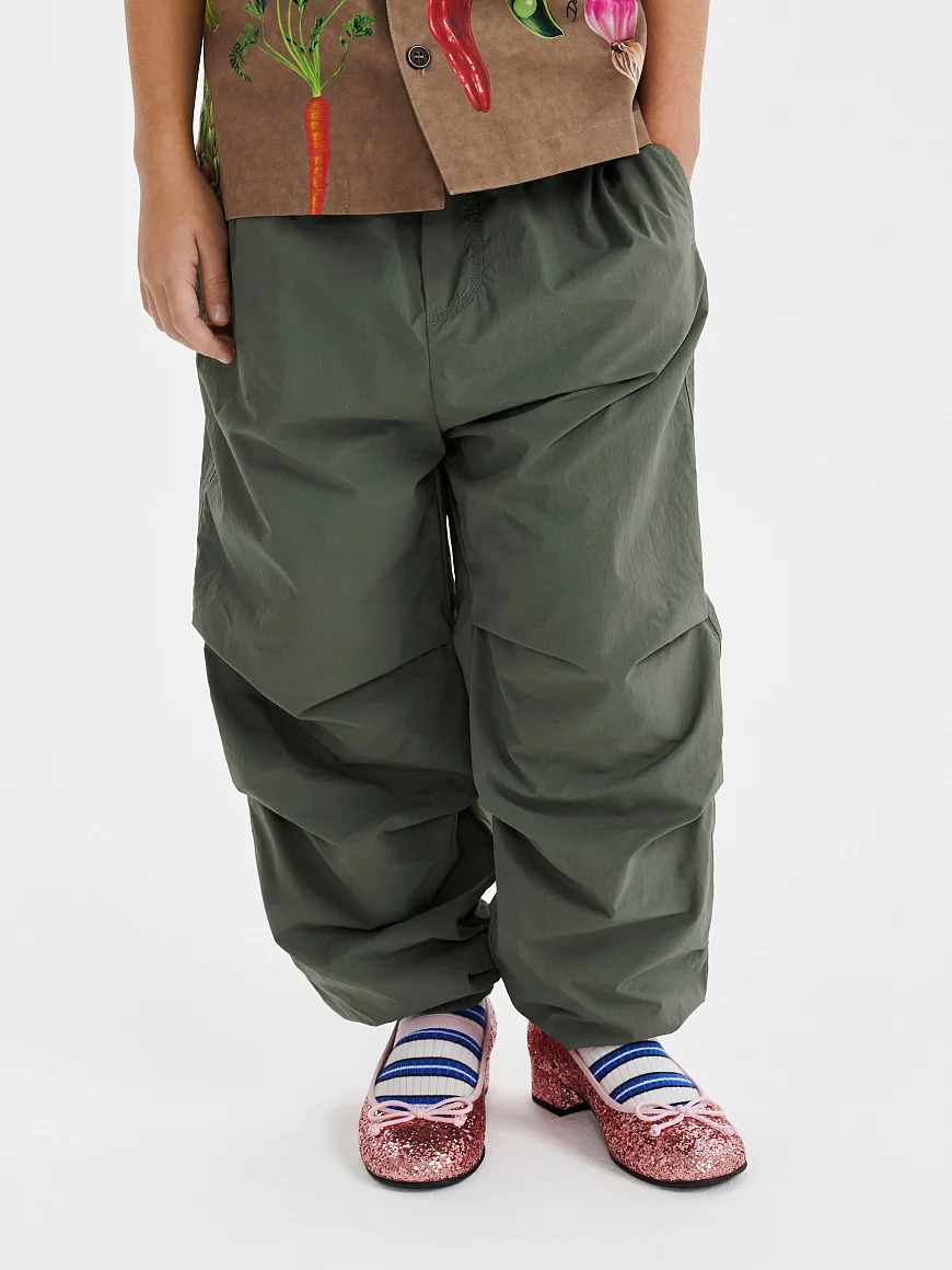Брюки-парашюты актуального свободного кроя, прямо как у модных взрослых. Объемные на коленях, зауженные к низу, с мягким поясом на резинке и хлопковой подкладкой, приятной на ощупь — можно носить на голые ножки. Идеальный комплект с ветровкой Brennan из нашей коллекции. Сделаны из тактильной и дышащей ткани с жатым эффектом, имеют боковые карманы и водоотталкивающее покрытие, которое подарит тепло и уют в дождливую погоду.