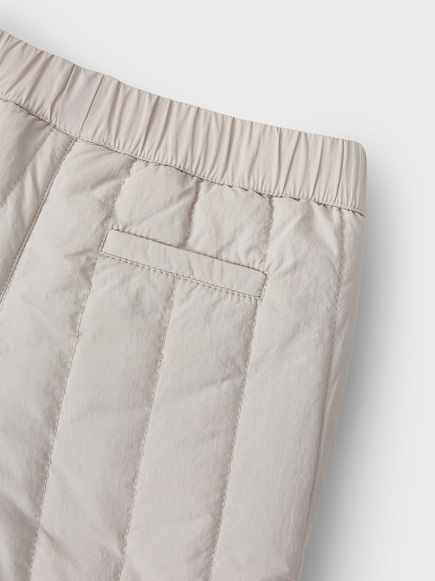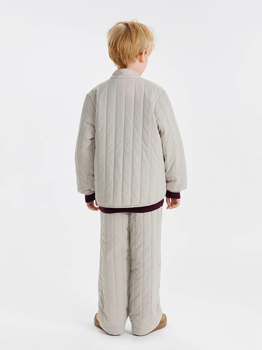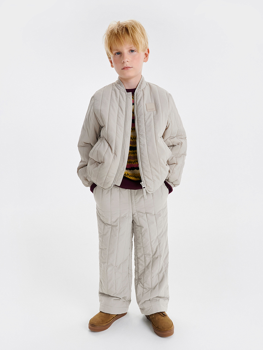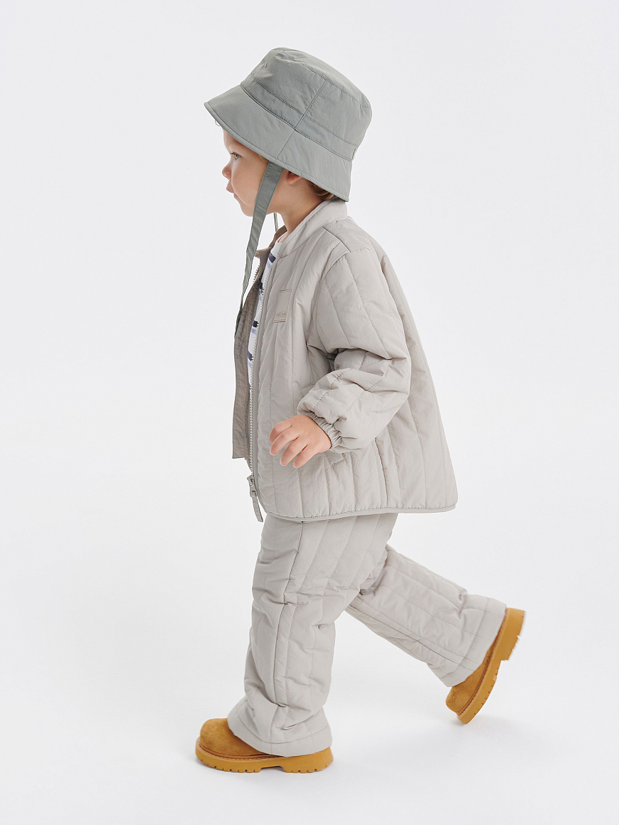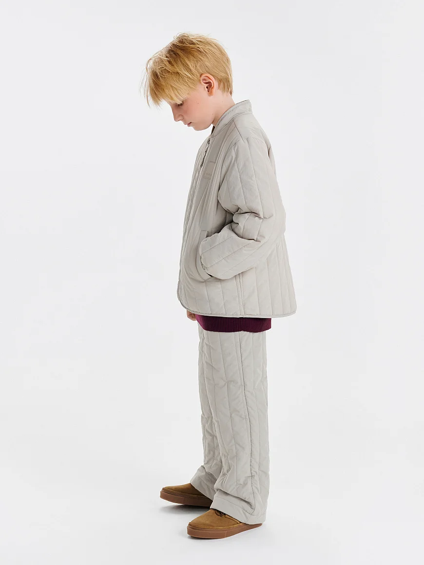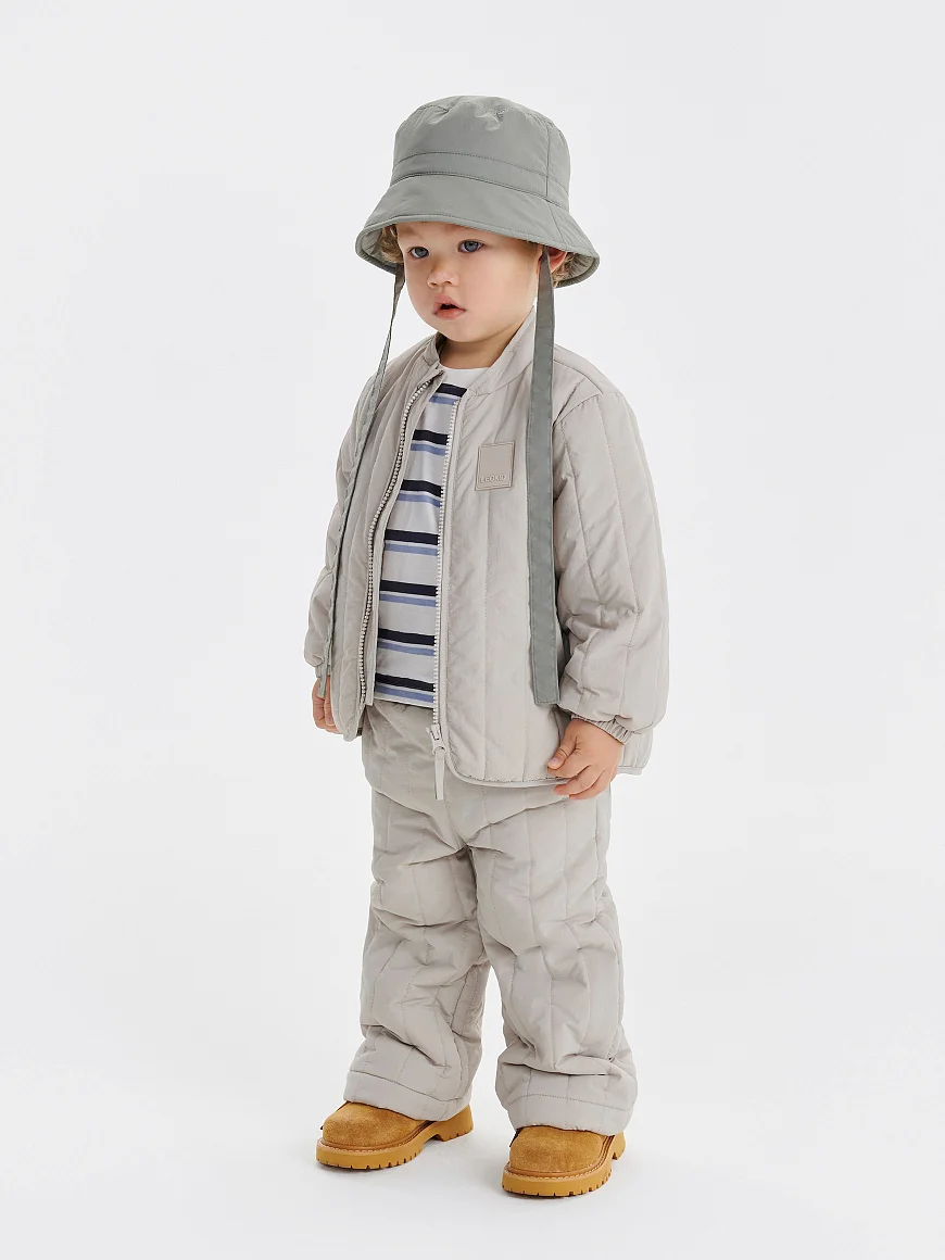 Стеганые брюки с жатым эффектом для юных модников. Образуют идеальный casual-образ вместе с курткой Dumi и панамой Kato. Могут похвастаться трендовой вертикальной стежкой, мягкой хлопковой подкладкой, легким утеплителем 100 г и универсальным стилем, который подружится с любой базой. Они не мнутся, не пачкаются и не пропускают влагу благодаря водоотталкивающей пропитке. Мягкая хлопковая подкладка позволяет носить изделие на голые ножки, а резинка на поясе — регулировать объем посадки.