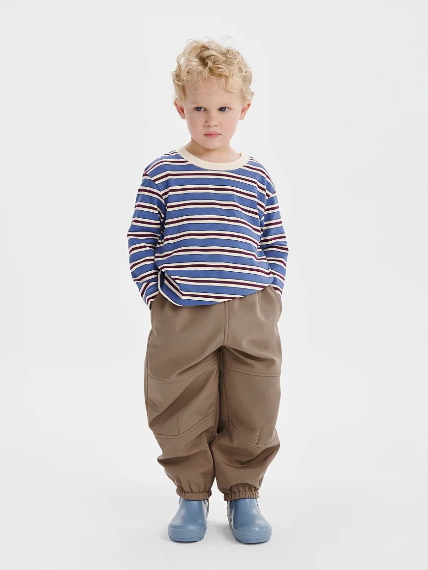 Их главный секрет — в волшебной трехслойной ткани: верхний слой защищает от воды и грязи, дышащая мембрана сохраняет одежду внутри сухой даже во время активных прогулок, а флисовая подкладка удерживает тепло и приятна на ощупь — можно носить на голые ножки. Мы сделали их не только функциональными, но и трендовыми. И пусть нежные оттенки вас не смущают — за ними легко ухаживать. Прочный материал выдержит до 40 000 стирок. Свободный крой и пояс на резинке подходит для детей разного телосложения.
