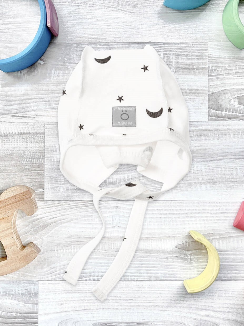 Чепчик из нежного трикотажа, головка и ушки закрыты.