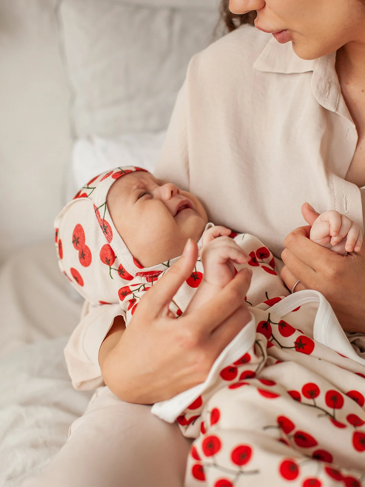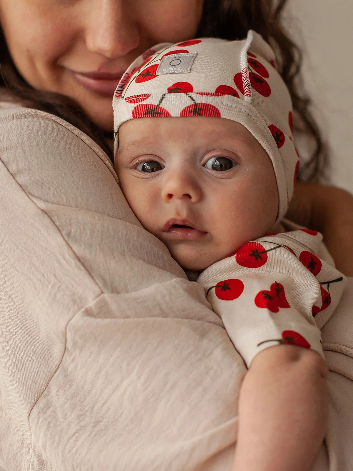Чепчик из нежного трикотажа, головка и ушки закрыты.
