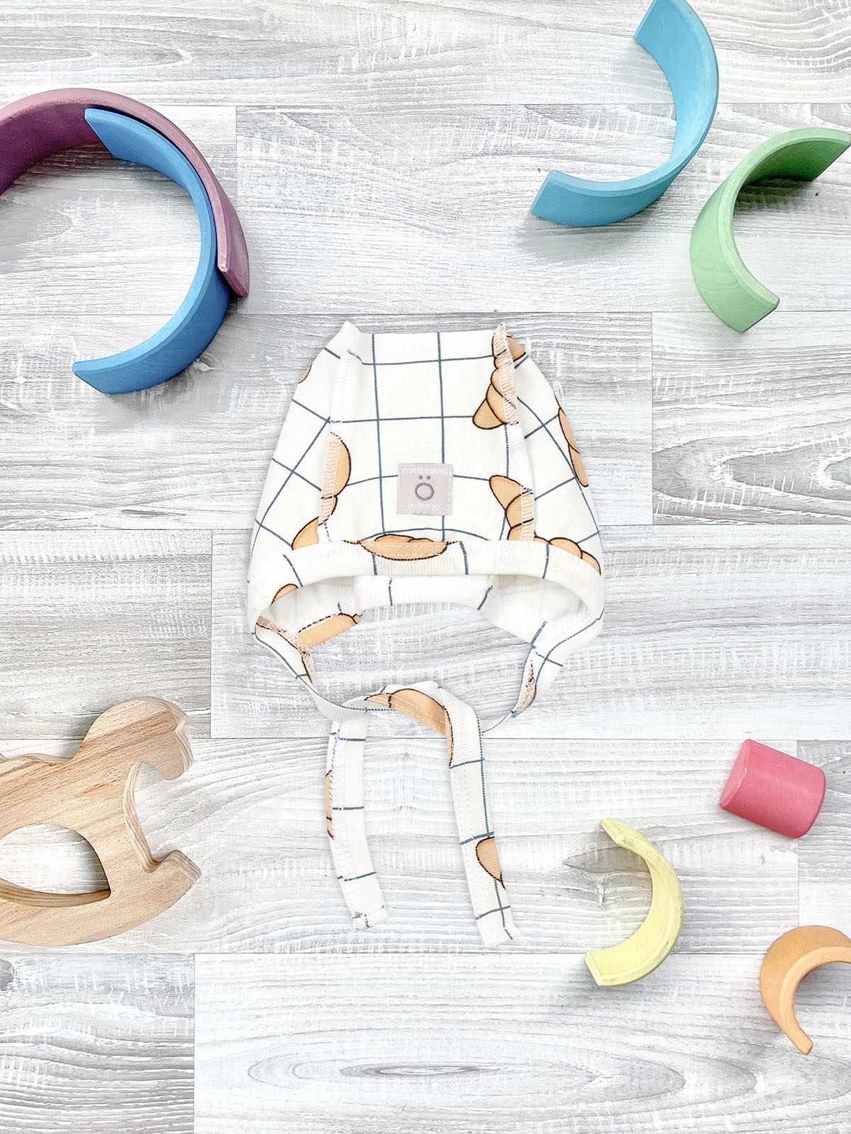 Чепчик из нежного трикотажа, головка и ушки закрыты.