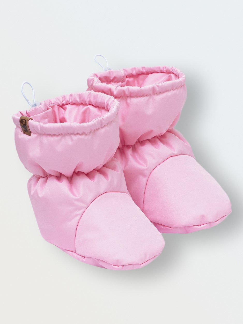 Модные, однотонные дутики. Материал холлофайбер согревает ножки, не спадают. Вверх пинеток сзади на резиночке, регулируется по ширине Удобные для прогулок в коляске. Можно сочетать с комбинезоном из колекции Dew.