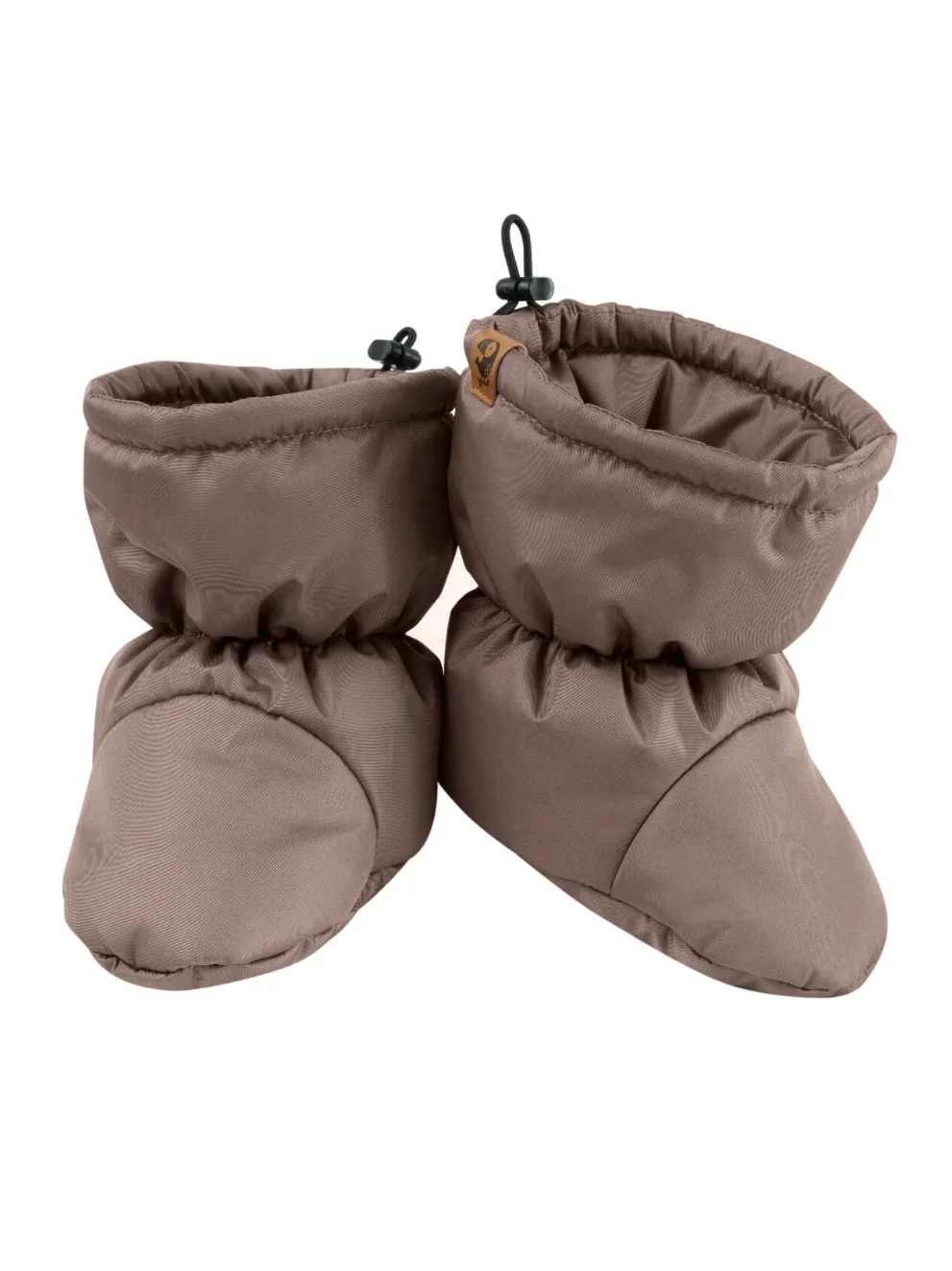 Модные, однотонные дутики. Материал холлофайбер согревает ножки, не спадают. Вверх пинеток сзади на резиночке, регулируется по ширине Удобные для прогулок в коляске. Можно сочетать с комбинезоном из колекции Dew.
