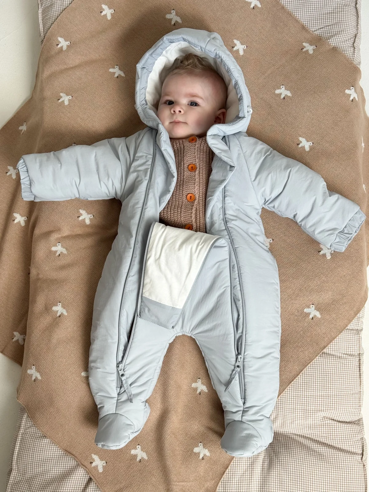 Лёгкий, но тёплый демисезонный комбинезон Tot — отличный выбор для прогулок в межсезонье. Верх выполнен из прочного нейлона, который защищает от ветра и влаги. Внутри — подкладка из 100% хлопка: мягкая, приятная к телу и комфортная для малыша. Двойная молния позволяет быстро и легко переодеть ребёнка. А глубокий капюшон надёжно защищает от ветра и сквозняка.
