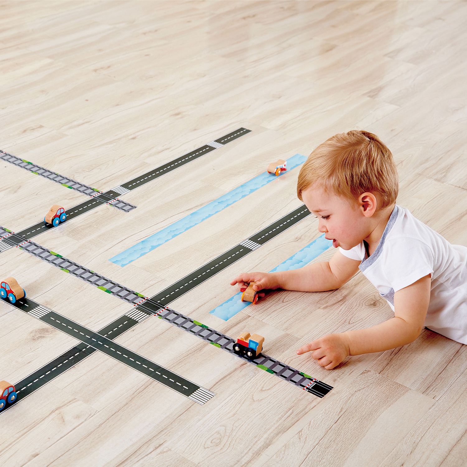 Прикрепите ленту с пейзажами к столу, подоконнику или окну, чтобы создать небо для вашего свободоходного самолета. Клейкая лента прилипает к большинству поверхностей, и также легко снимается.