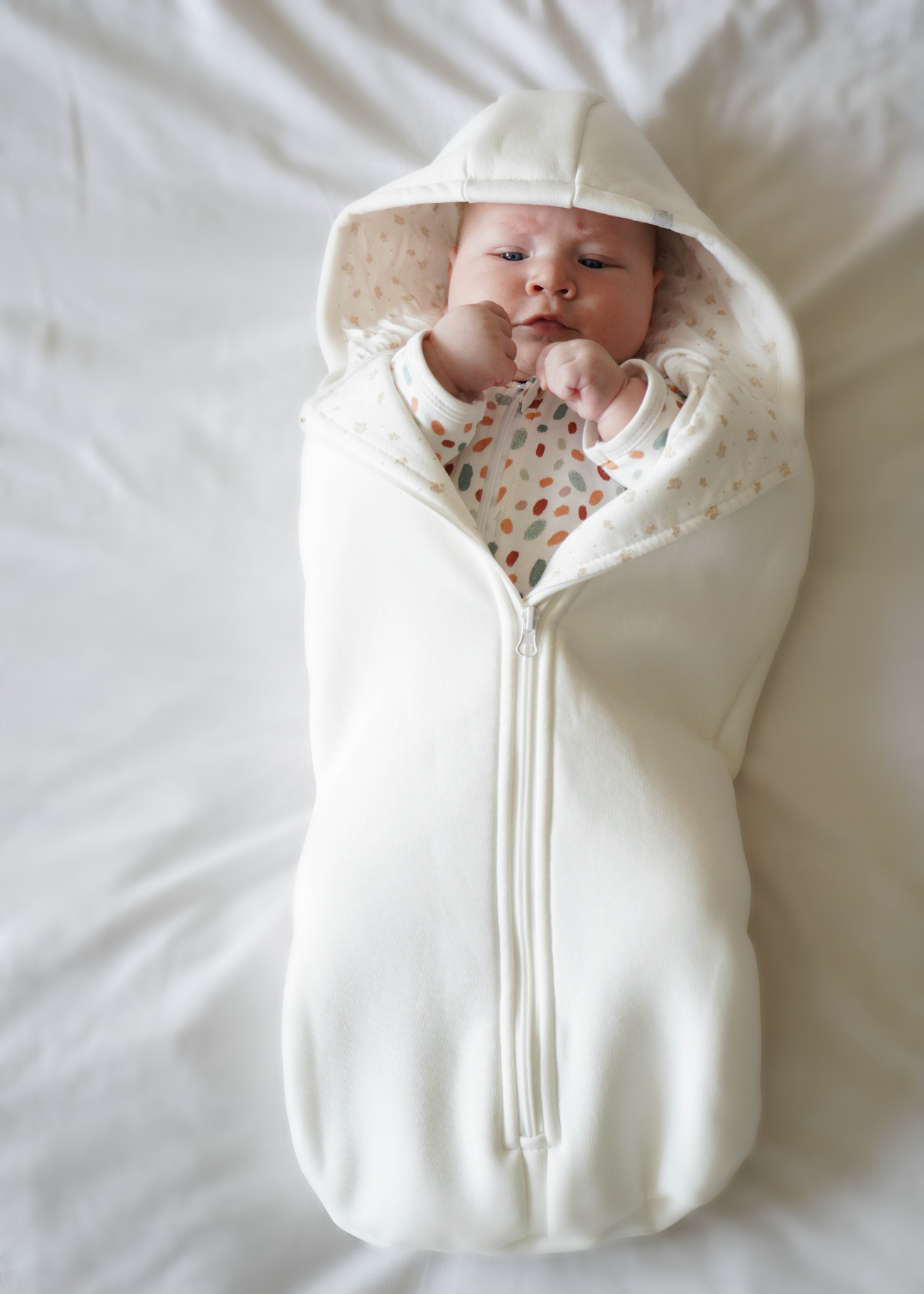 Кокон на молнии удобен в использовании и создаёт свободную систему пеленания. Глубокий капюшон дополнительно защитит от непогоды на прогулке