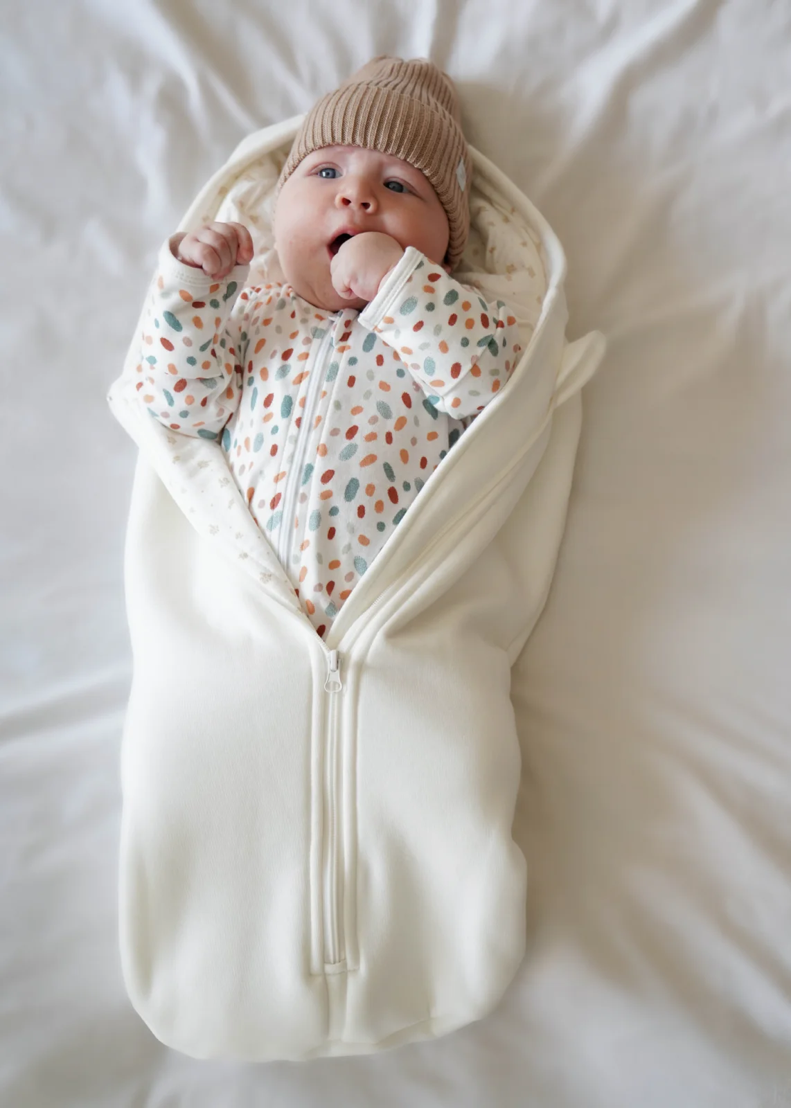 Кокон для новорождённых создаёт малышу чувство комфорта и безопасности как дома, так и на прогулке. Кокон выполнен из футера с начесом и имеет 100% хлопковый подклад.