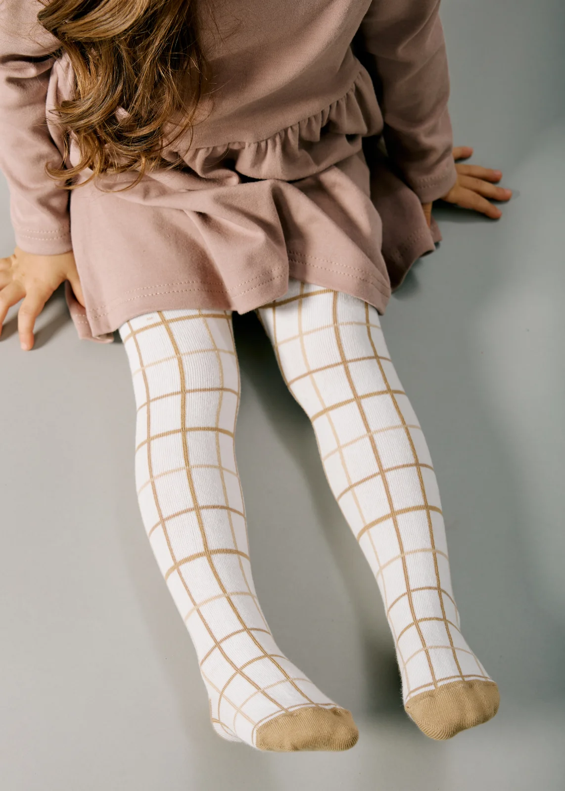 Колготки Simple "Клетка", шоколад+бронза+лён