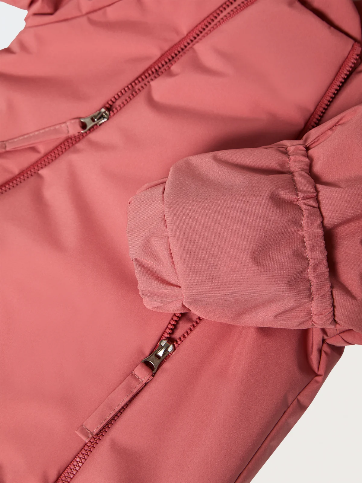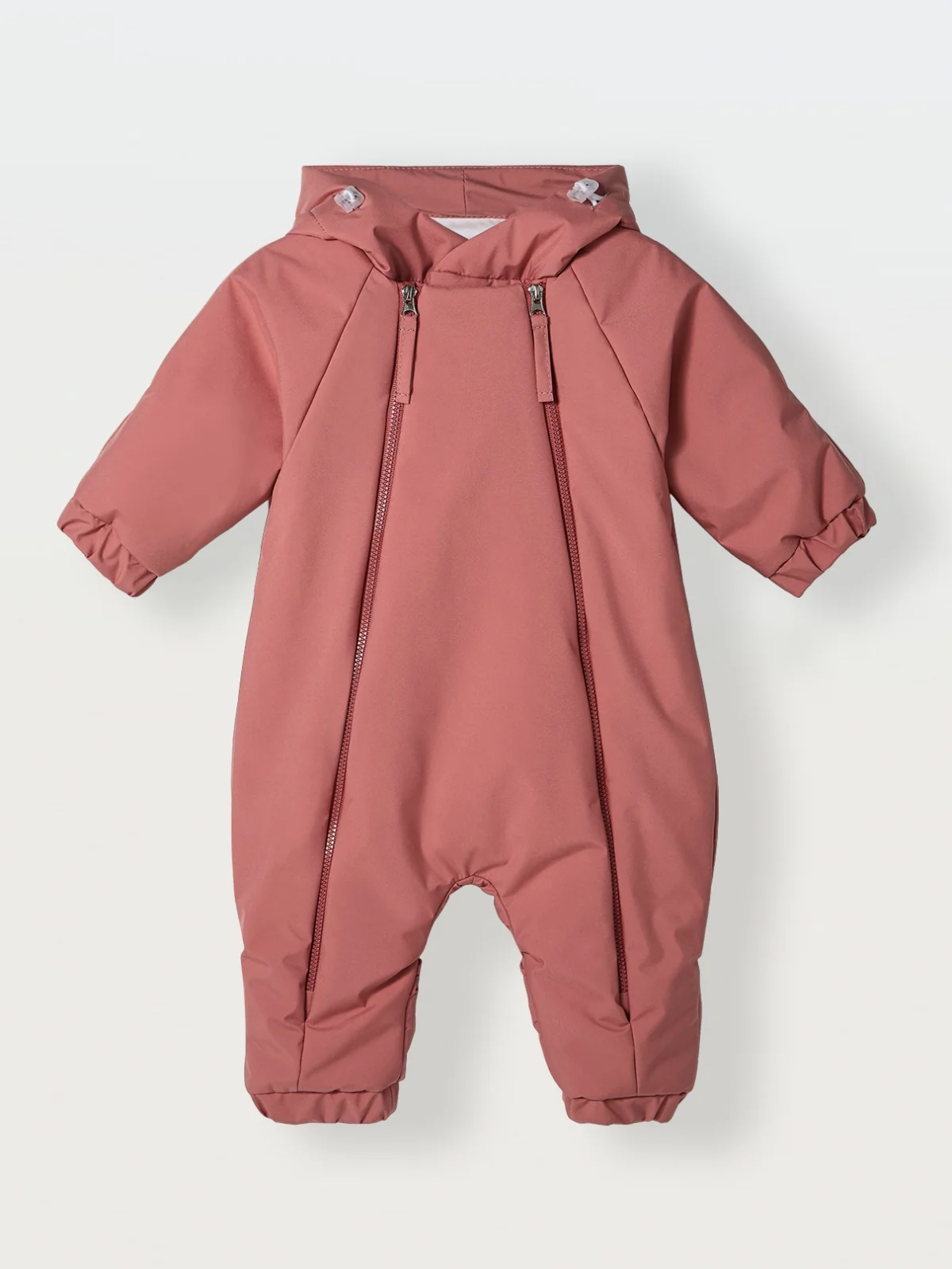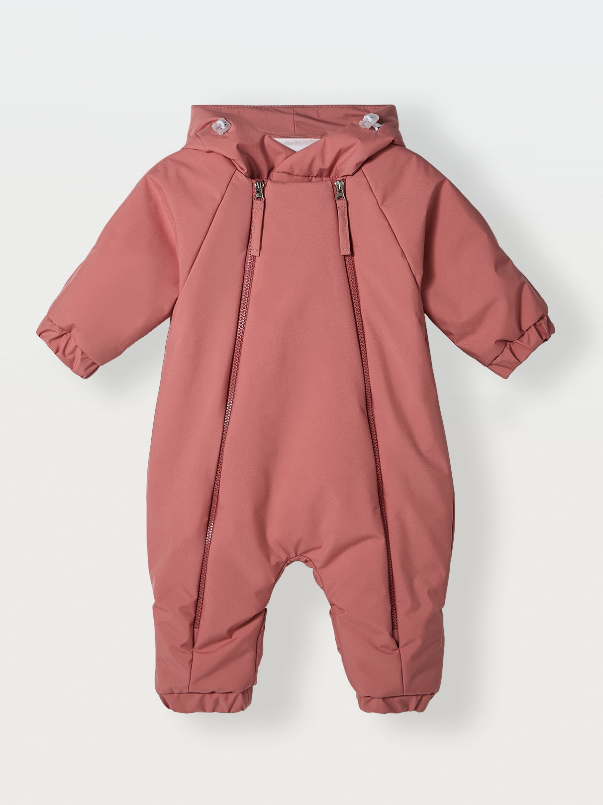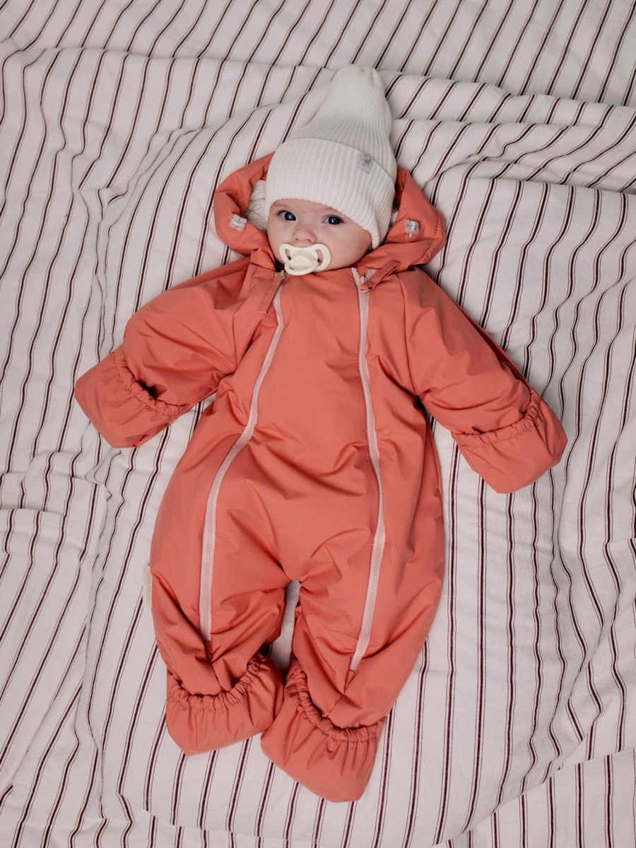 Легко надевать даже на новорождённых благодаря двум молниям. Пока малыш маленький, манжеты удобно закрыть, что избавит от необходимости надевать носочки и рукавички. Далее можно добавить пинетки. Глубокий капюшон имеет утяжки.