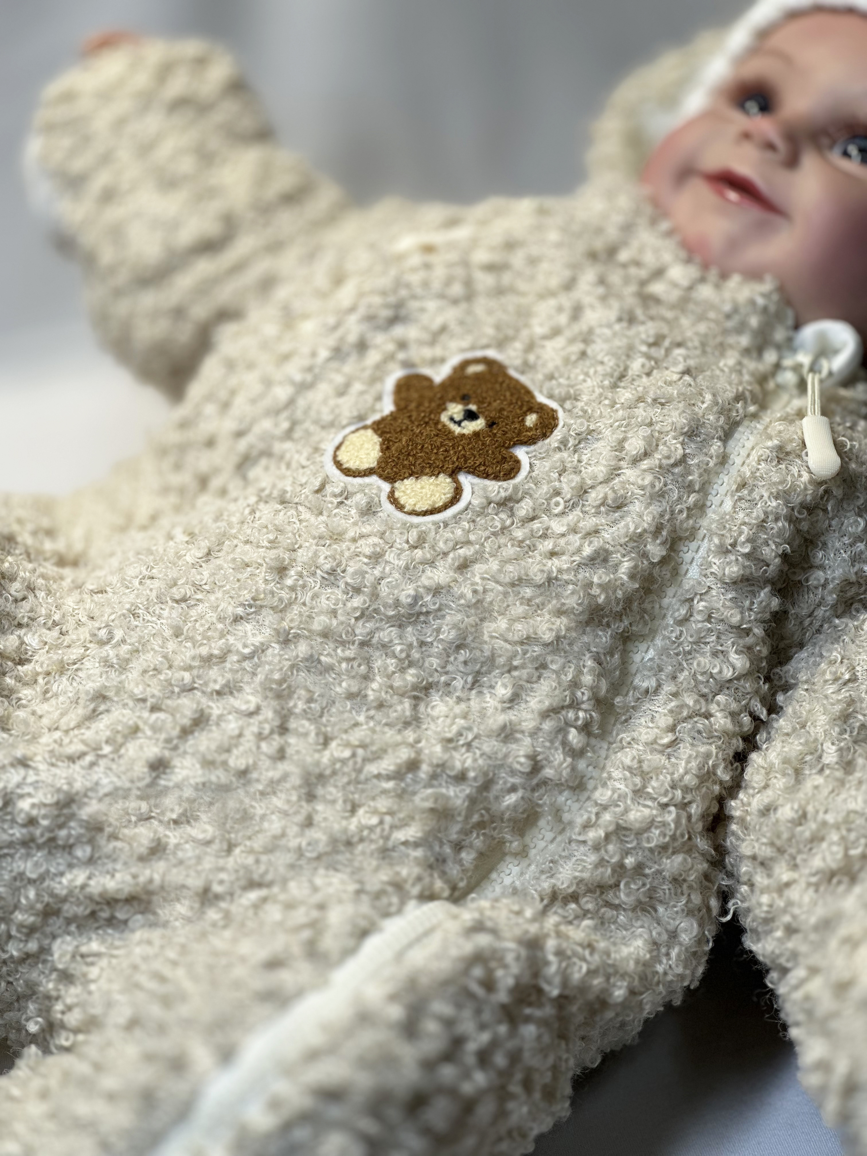 Плюшевый комбинезон Мишка— это уютный и теплый наряд для вашего малыша. Он отлично сохраняет тепло до +15°C, что делает его идеальным выбором для прохладных дней.