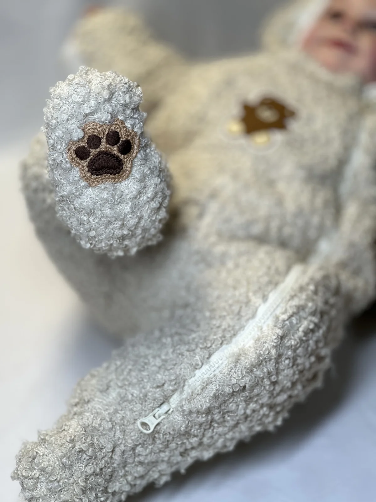 На стопах есть нашивки в виде лапок, дополняющие дизайн и придающие изделию завершенный вид. Этот комбинезон — отличный выбор для тепло и стиля вашего малыша в холодное время года.