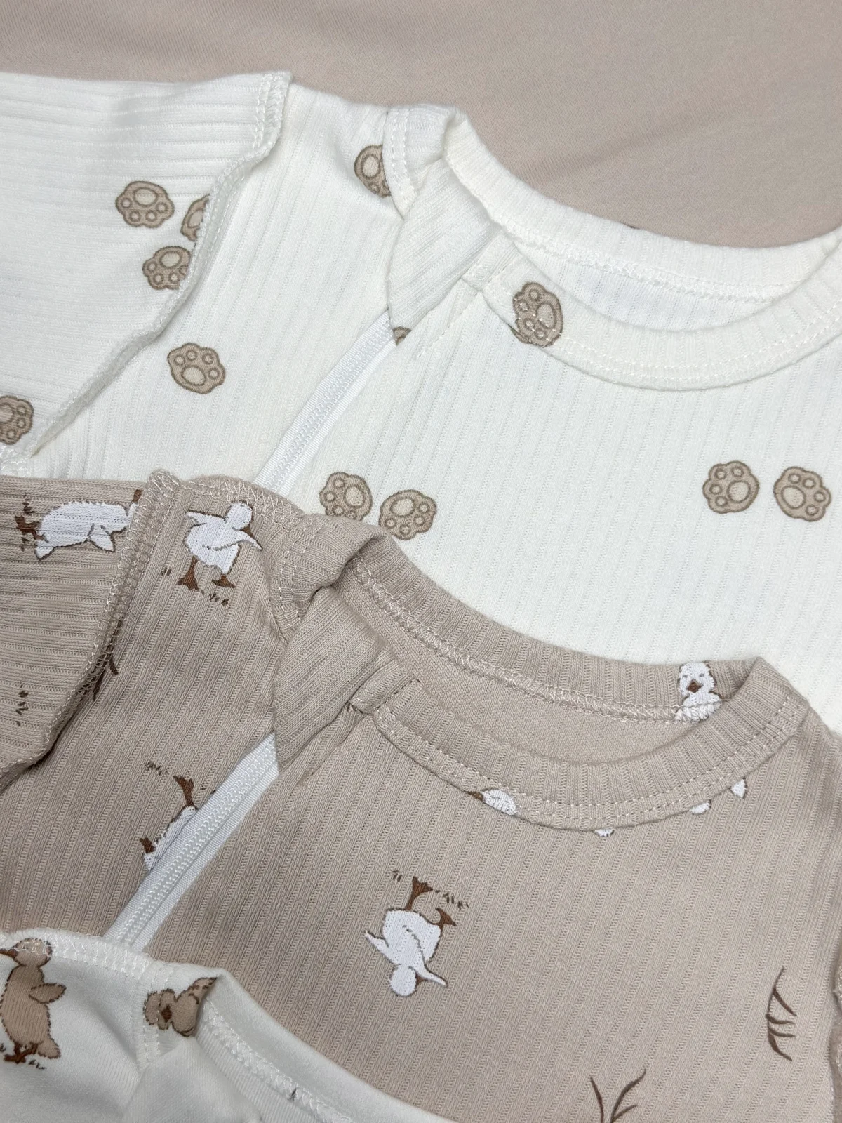 Молния изнутри защищена тканевой планкой, защищает от защипов нежную кожу малыша и не соприкасается с ней. На вороте у шеи дополнительно нашит трикотажный язычок, он закрывает бегунок и не даёт застёжке раскрыться.