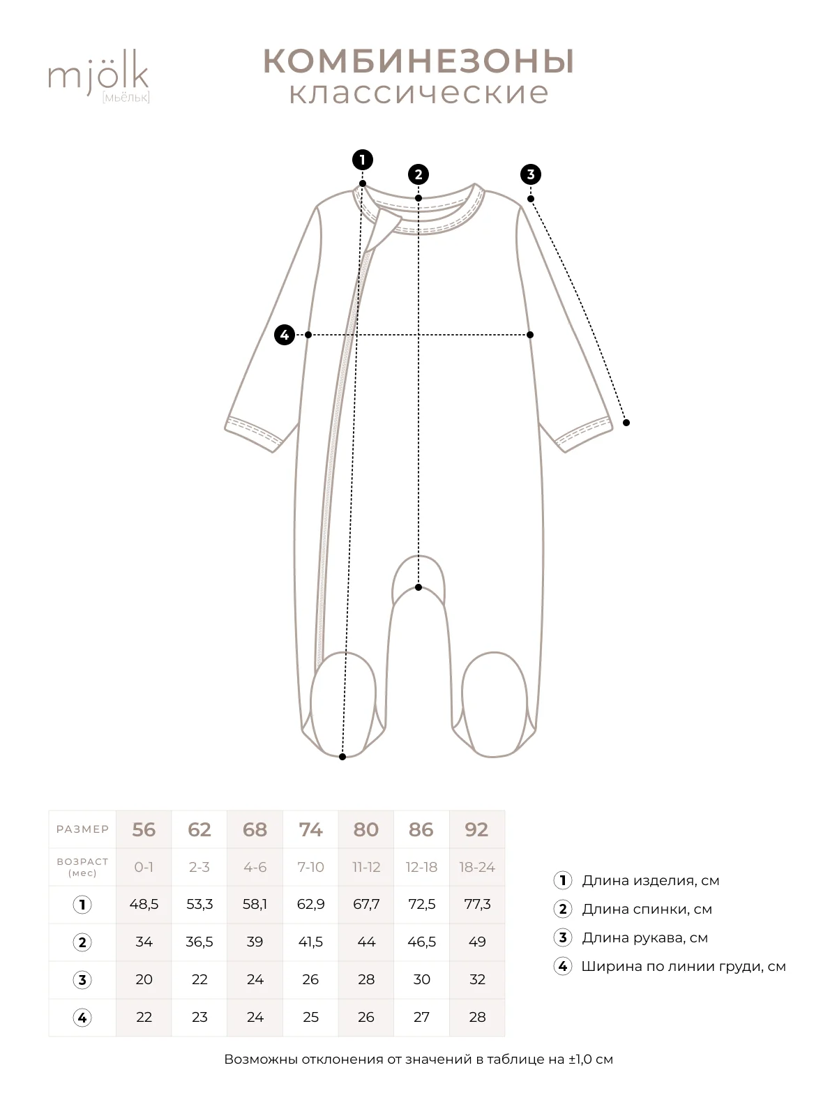 Комбинезон Mjölk [мьёльк] Sleep and Play — классический комбинезон на молнии с закрытой ножкой во всех размерах, выполненный из плотного и очень мягкого 100% хлопка.