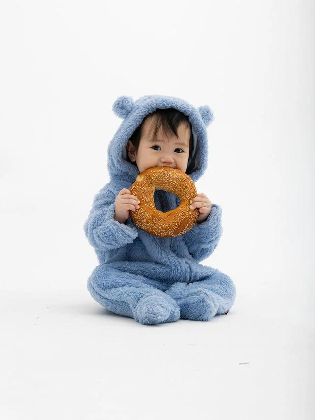Размер 9-12 месяцев имеет открытые ножки и ручки на комфортной резинке.