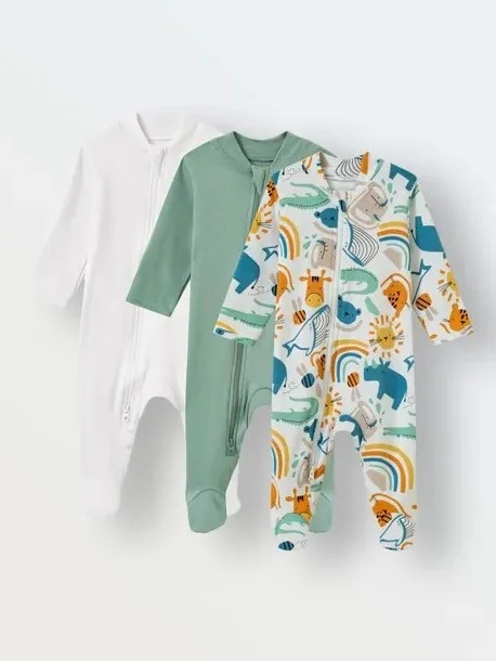 Комплект из 3 слипов на молнии из 100% хлопка, имеющего международный сертификат OEKO-TEX (экологичность производства ткани). Модель с двумя бегунками для легкого переодевания малыша.