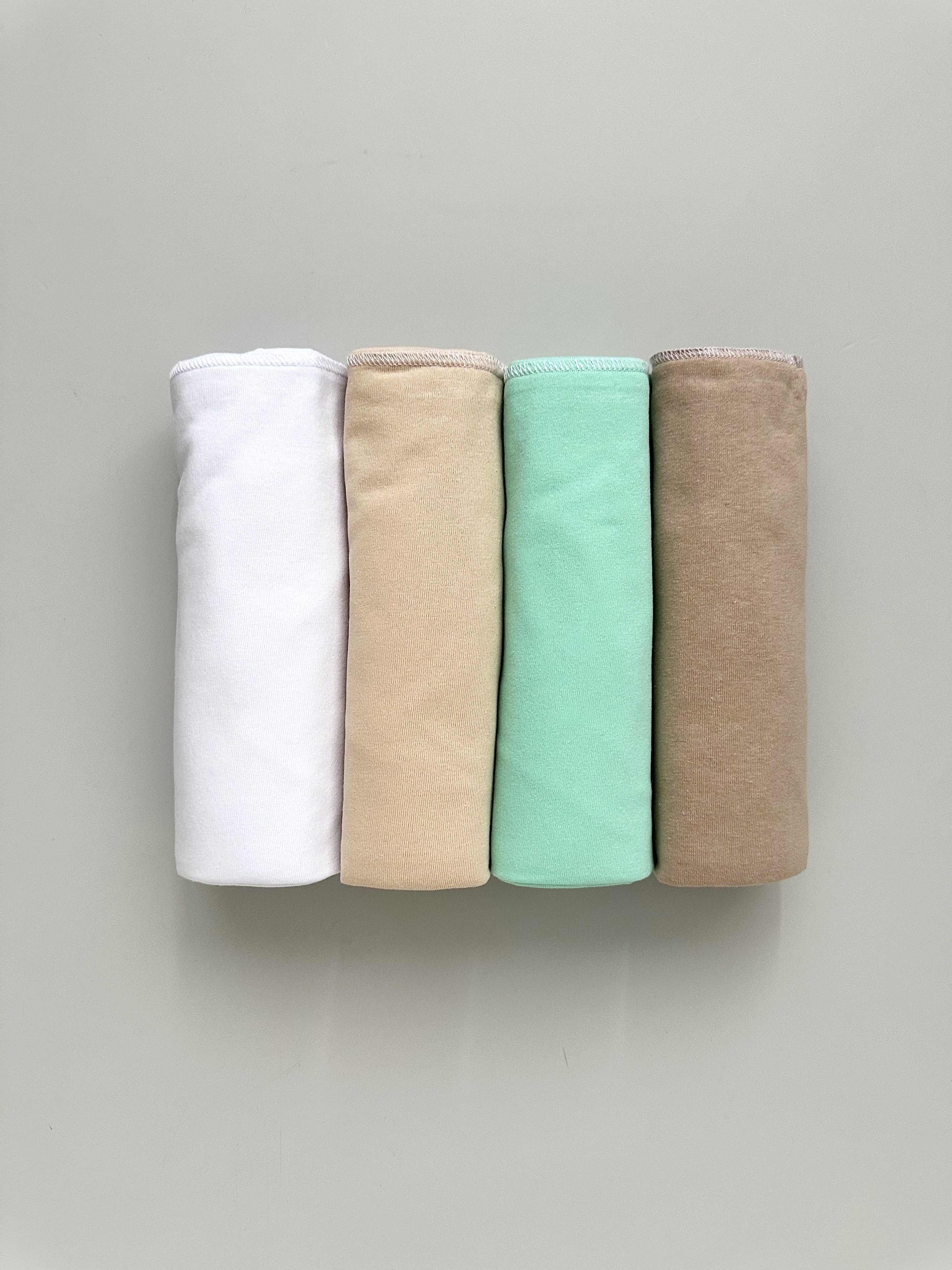 Комплект тонких пелёнок из 4х штук, Белый/Какао/Бирюзовый/Шоколад
