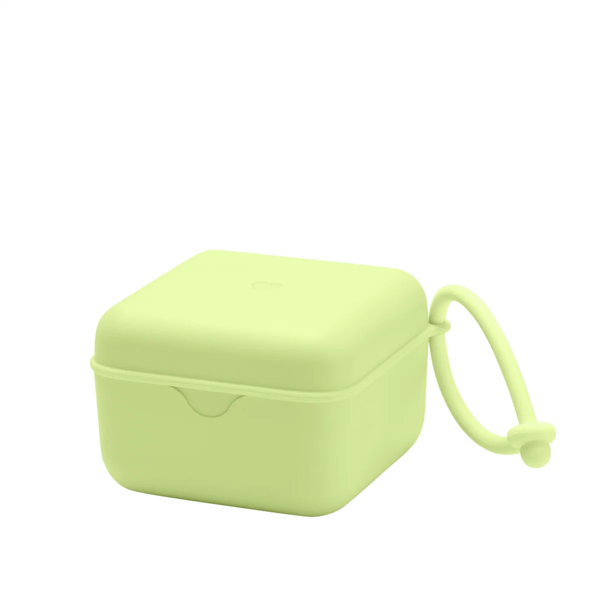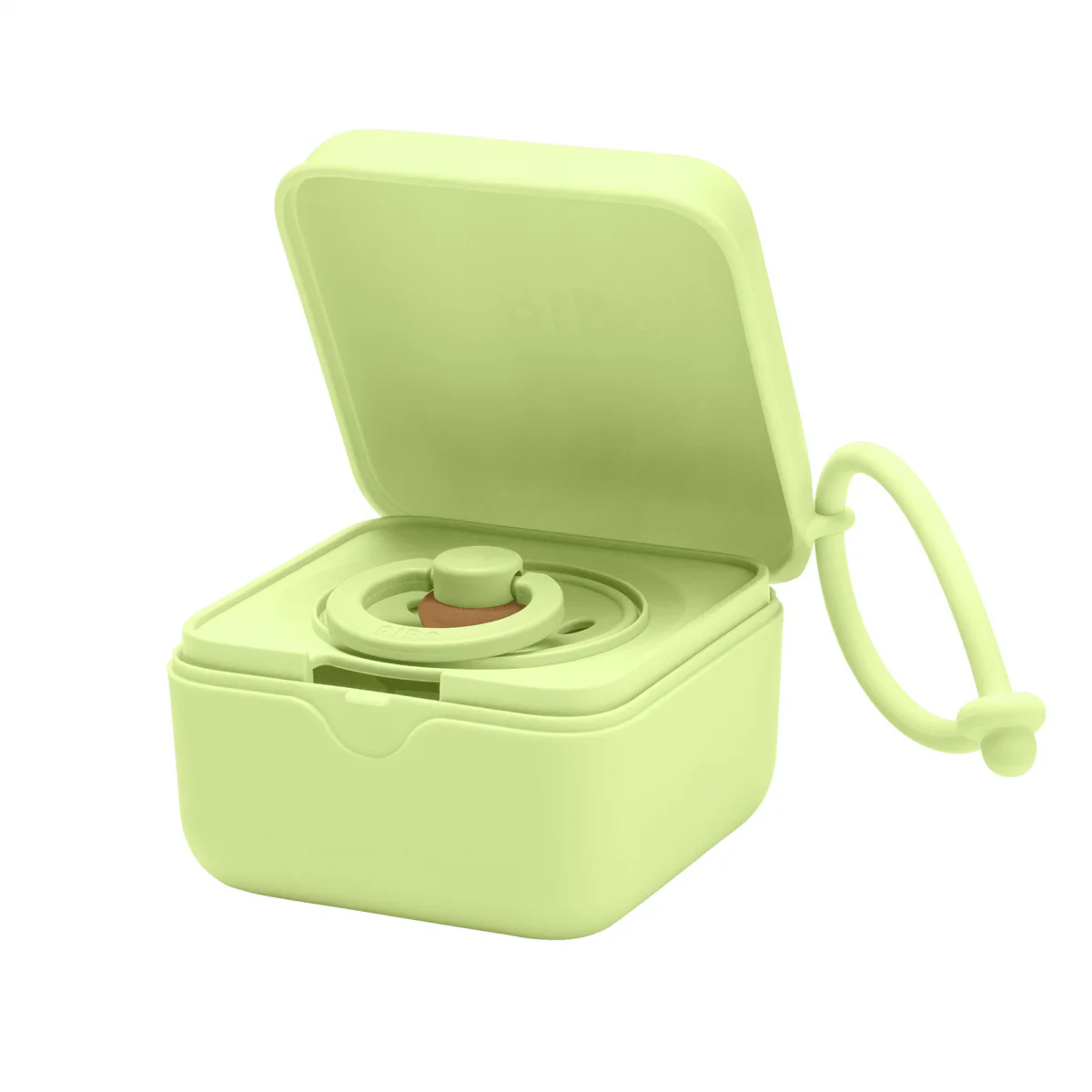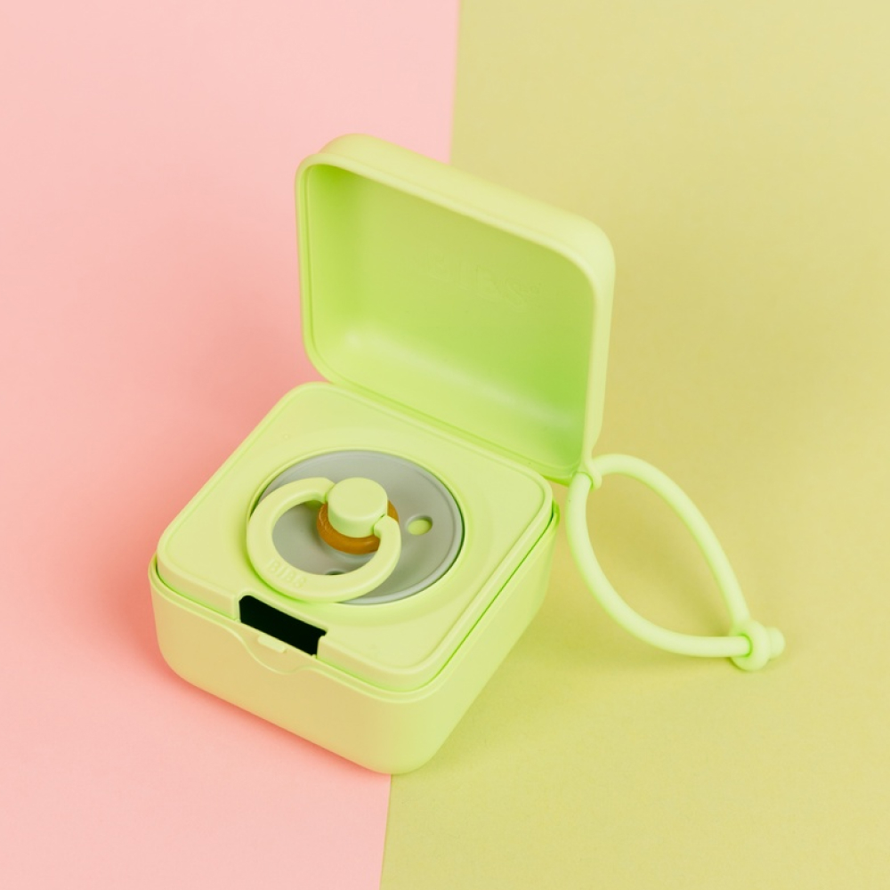 Аксессуар стильно смотрится на сумке или коляске. Контейнер поставляется со специальной съёмной вставкой, с помощью которой можно закрепить внутри одну пустышку BIBS любой формы. Без вставки контейнер вместит уже три пустышки BIBS или одну пустышку с держателем. Можно использовать как стерилизационный бокс для силиконовых пустышек.* Изготовлен из 100% безопасного и пригодного для пищевых продуктов материала — полипропилена, ремешок для крепления выполнен из силикона. Не содержит BPA. *Для стерилизации силиконовых пустышек необходимо добавить 2 столовых ложки холодной воды в контейнер и поставить его в микроволновую печь на 60 секунд при максимальной мощности 600 Вт. Температура не должна достигать 100°С. После стерилизации нужно дать остыть контейнеру пару минут, и пустышка снова готова к использованию. **Цветопередача может немного отличаться от реальности.
