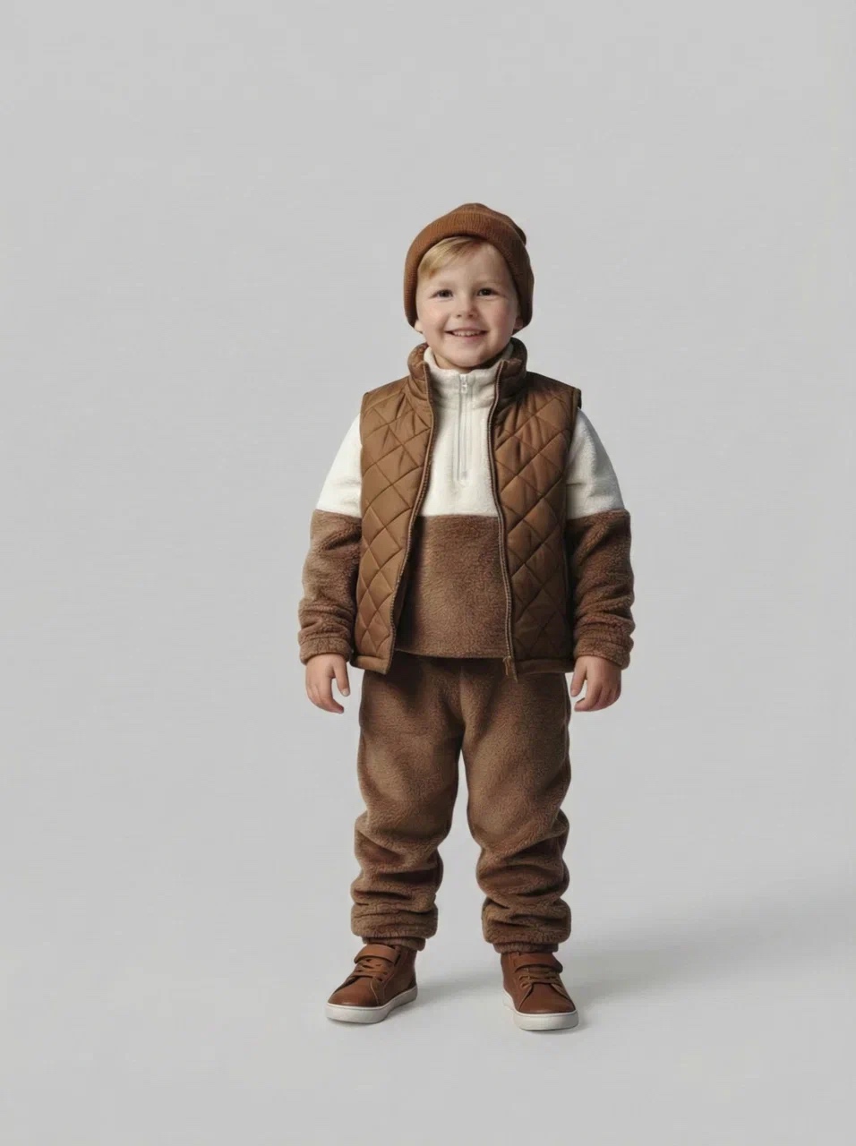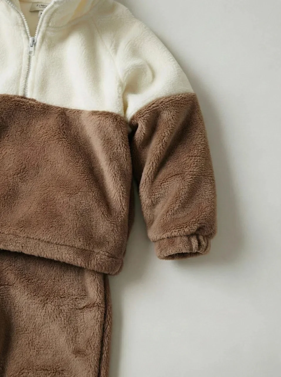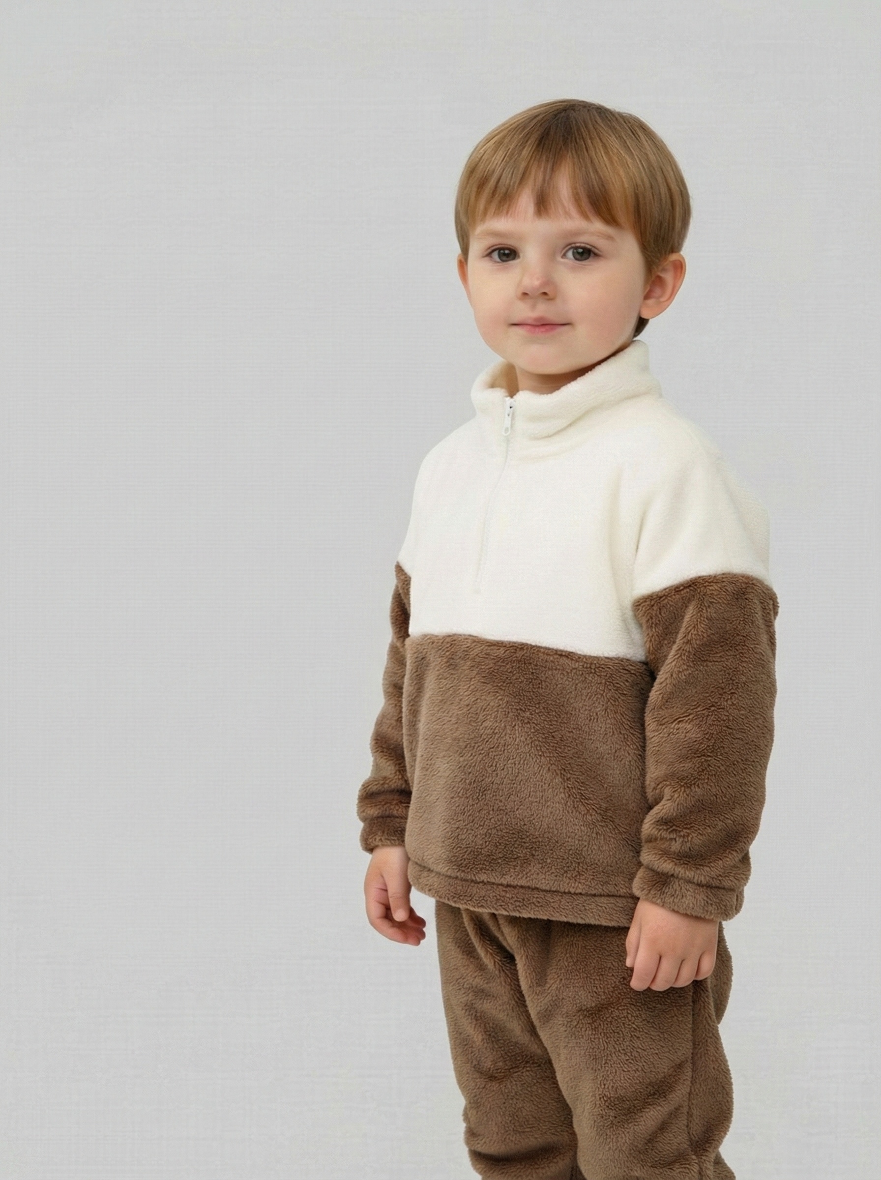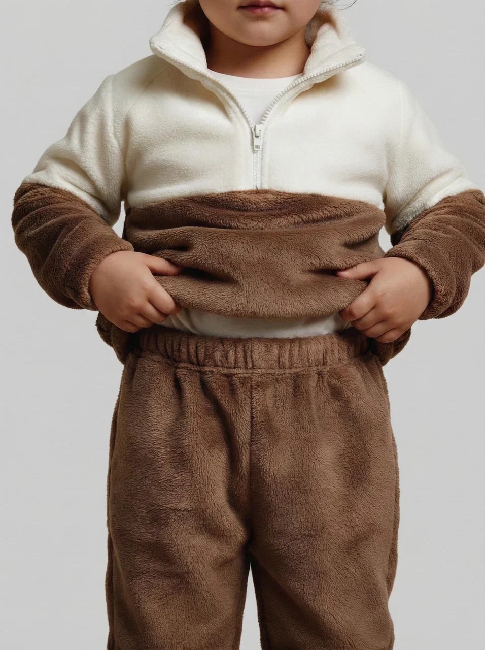 Костюм выполнен из мягкого и тёплого плюша, приятного к телу. Ткань дышит, не вызывает раздражений, сохраняет форму и нежность даже после множества стирок. Подходит детям с чувствительной кожей.