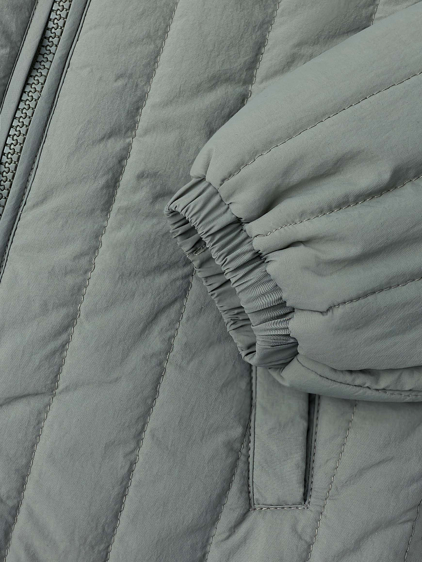 —ткань с жатым эффектом и вертикальной стежкой —планка на молнии для защиты подбородка —небольшой воротник-стойка —окантовка из основной ткани —передние карманы с листочкой —манжет рукава на резинке —слегка удлиненная спинка —силиконовая нашивка-лого на груди —легкий листовой утеплитель 100г/m2 —водоотталкивающая пропитка