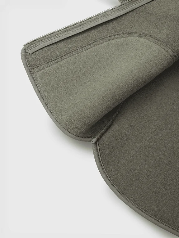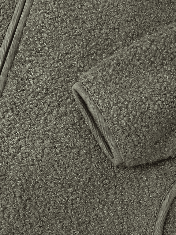 -бондированная ткань: снаружи- ворс, внутри-флис -центральная застежка на молнию - внутренняя планка с защитой подбородка -воротник-стойка -удлиненная спинка -карманы в боковых швах -лого нашивка на груди