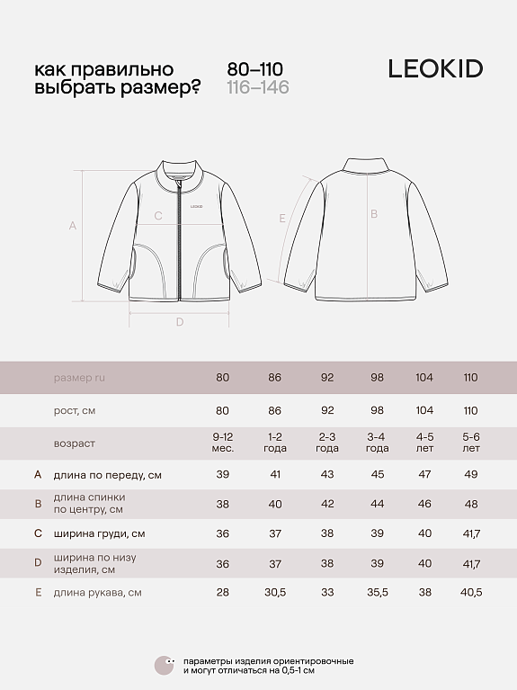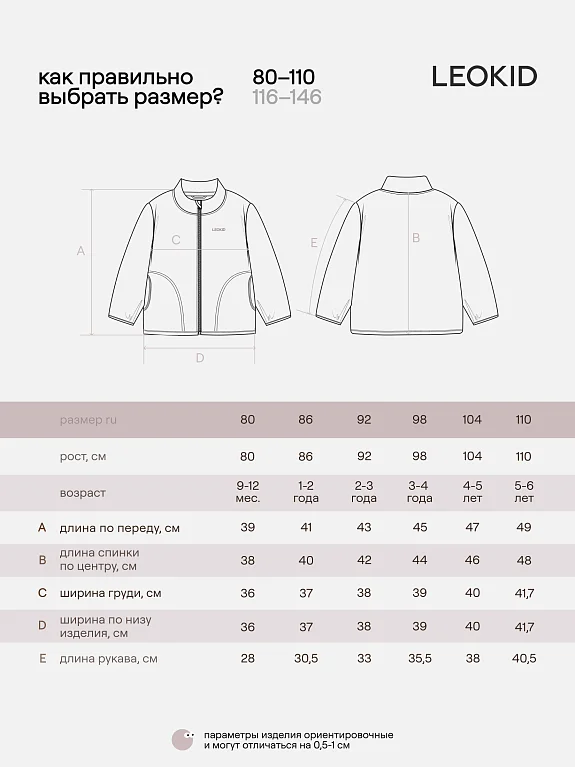 Куртка «барашек» — наш демисезонный бестселлер из двустороннего флиса: снаружи — ворс, внутри — приятная на ощупь ткань hand feel. Не пропускает ветер благодаря технологии Windbreaker и отлично вписывается в фэмили-лук вместе с женской моделью Oona для мам. В ней малышу захочется провести все детство, поэтому мы сделали ее доступной для детей от 12 месяцев до 11 лет.