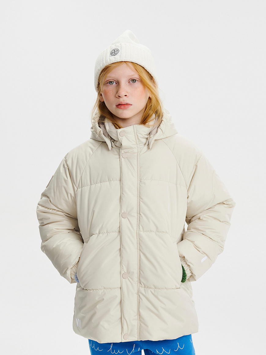 Наш бестселлер — утепленная куртка для холодной весны: с трендовым дизайном, комфортной посадкой и правильным количеством утеплителя, чтобы малышу было удобно двигаться. К новому сезону мы слегка усовершенствовали модель: удлинили спинку и добавили немного наполнителя, не в ущерб свободному крою. В ней не страшно гулять: несмотря на нежную палитру, грязь легко очищается благодаря умной водоотталкивающей пропитке. Капюшон отстегивается, а флисовая вставка на воротнике дарит мягкость и уют.