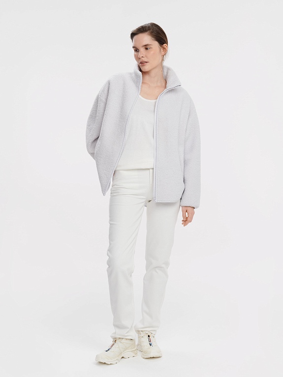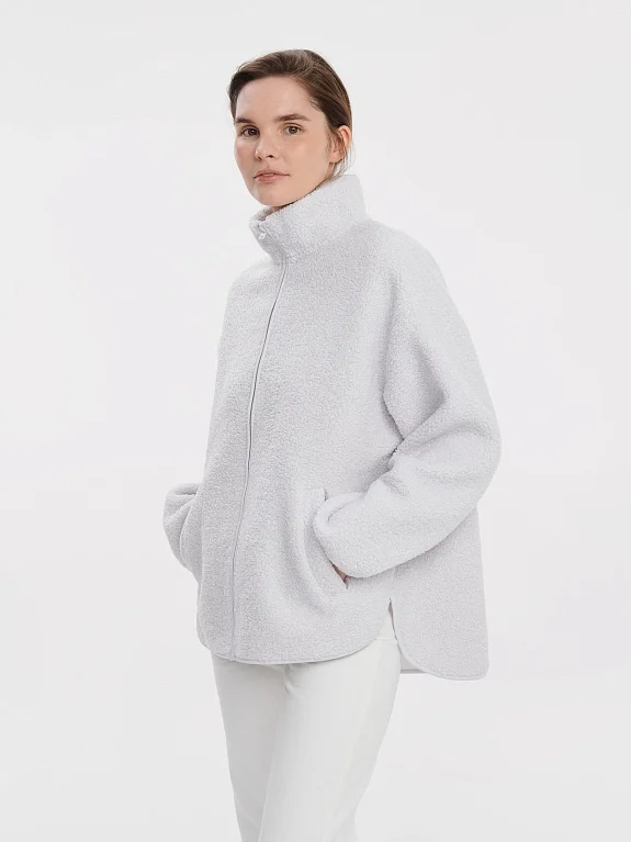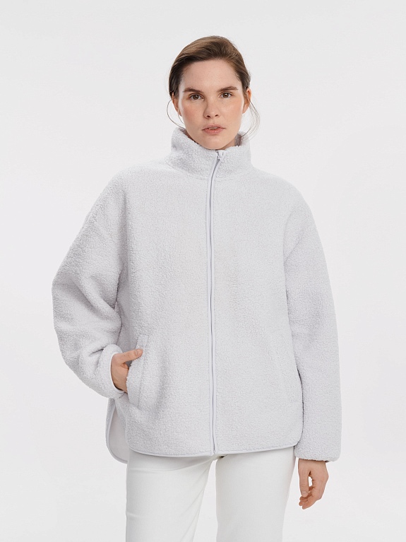 -бондированная ткань: снаружи- ворс, внутри-флис -центральная застежка на молнию -воротник-стойка -удлиненная спинка -карманы в боковых швах