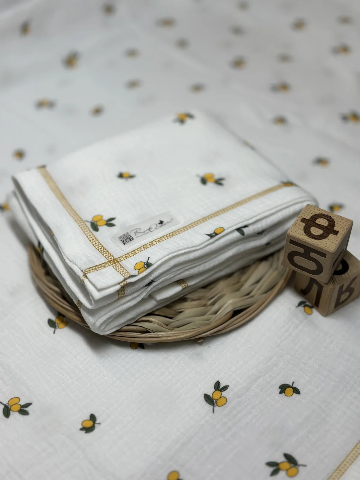 Муслиновая пеленка Лимончики 90*130 (+/-5 см)
