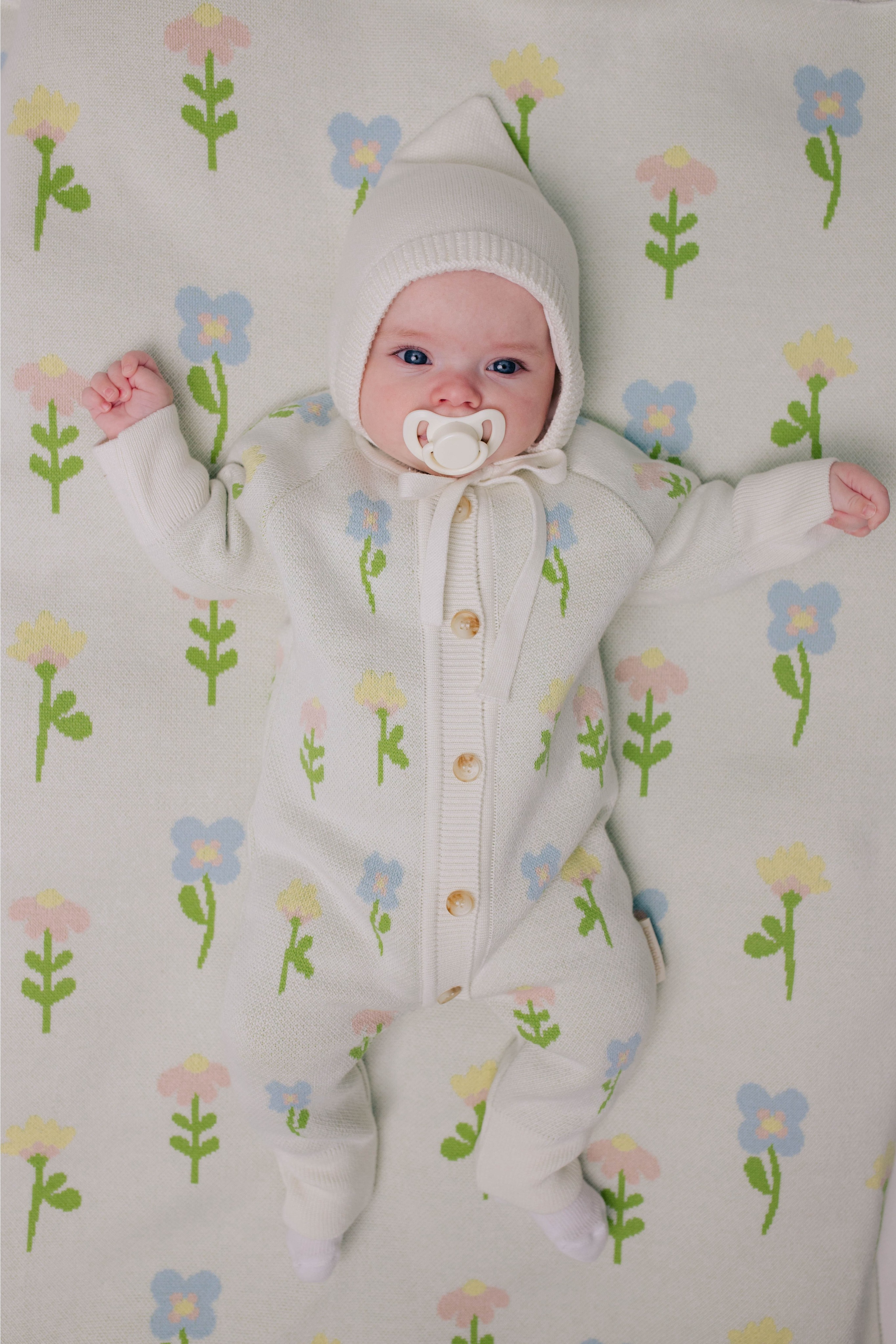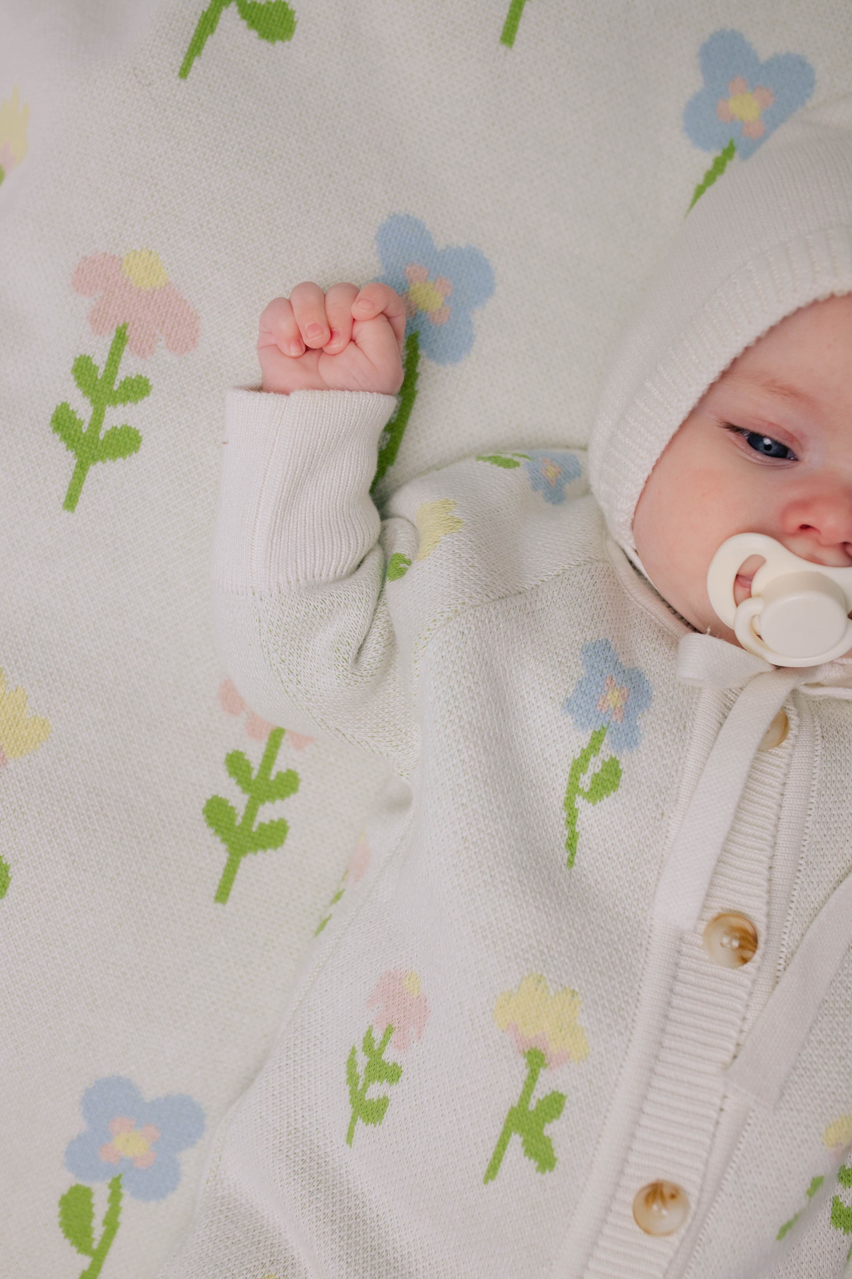 Вязаный плед для малыша очень мягкий и универсальный. Его можно использовать как на выписку, в виде конверта, так и в коляску, кроватку и автокресло. Его всегда можно постелить в зоне игр малыш.