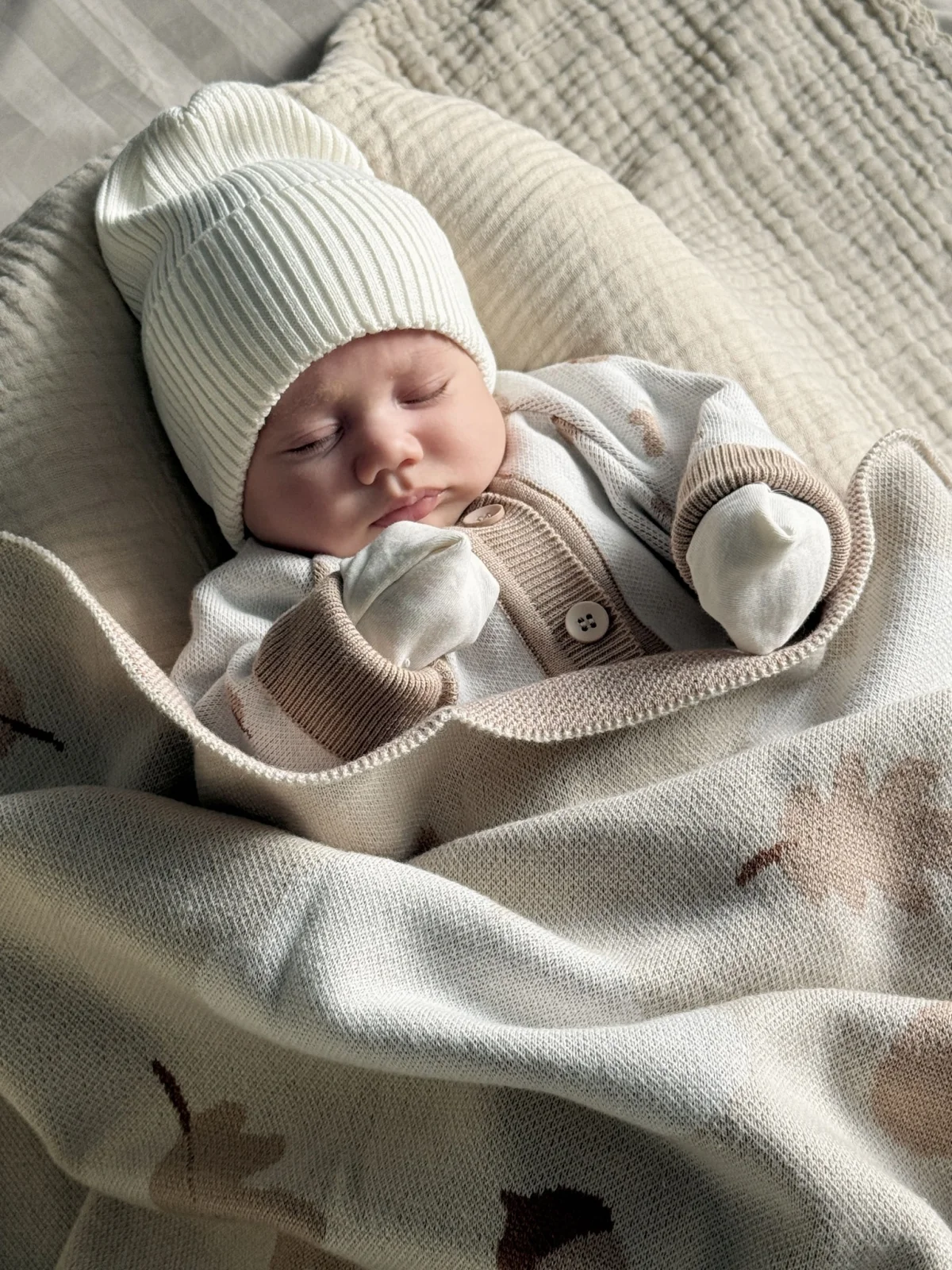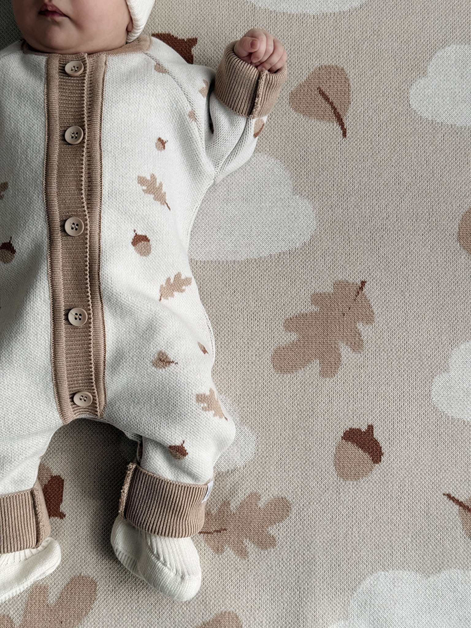 Вязаный плед для малыша очень мягкий и универсальный. Его можно использовать как на выписку, в виде конверта, так и в коляску, кроватку и автокресло. Его всегда можно постелить в зоне игр малыш.