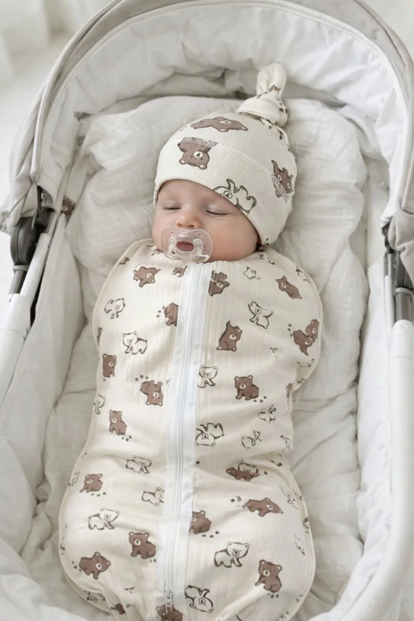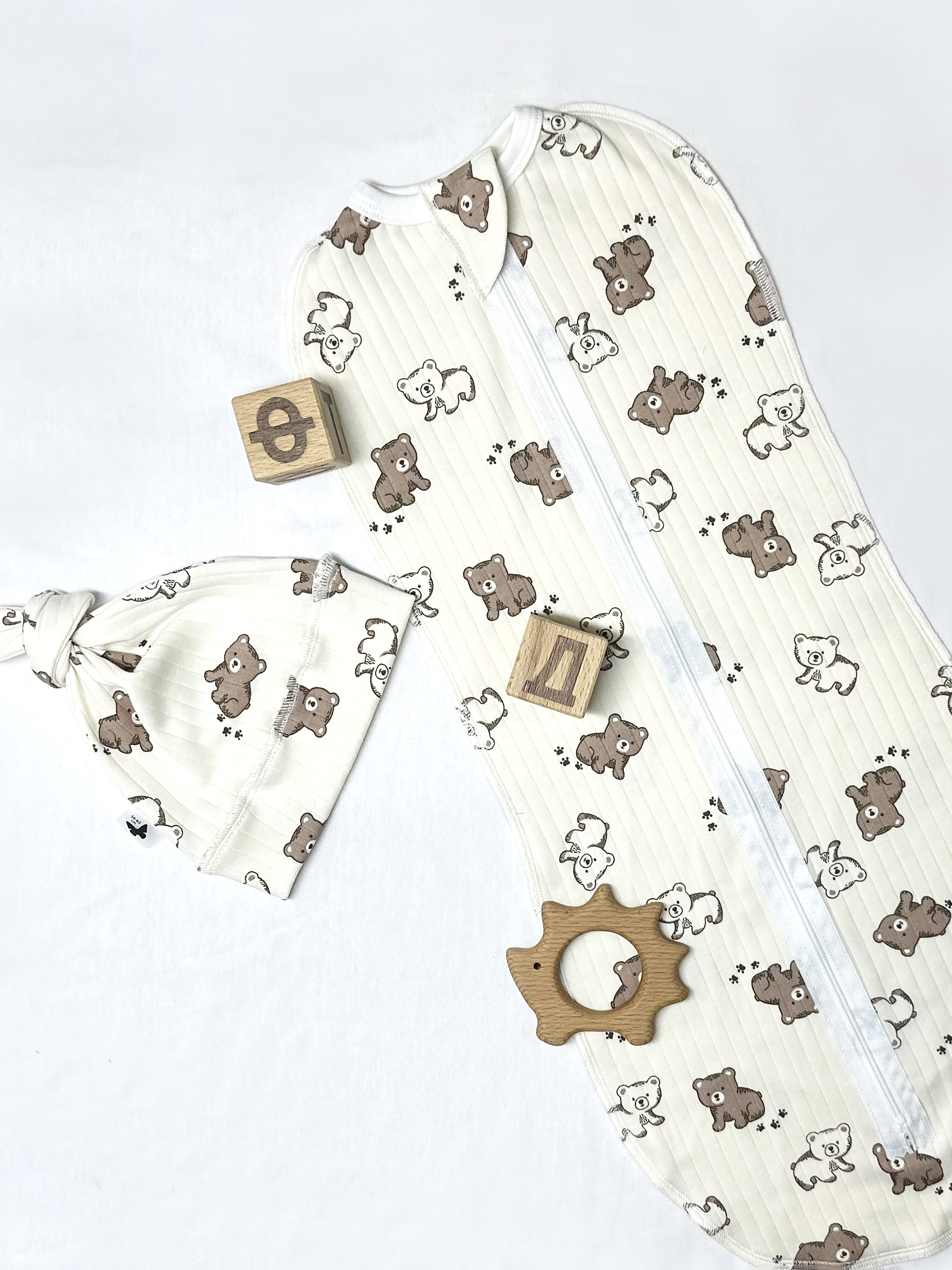 Набор "Мишка Топтыжка" (Пеленальный кокон + Шапочка Узелок)