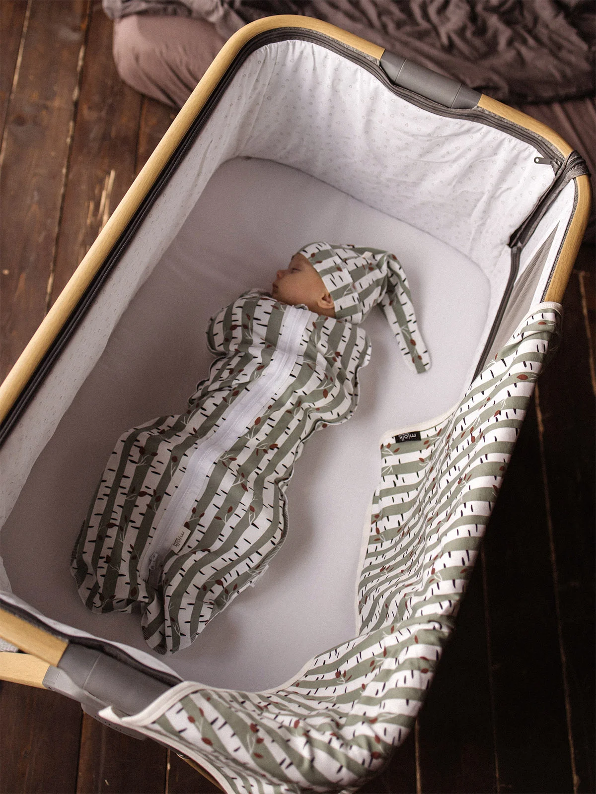 Кокон сделан из 100% трикотажного хлопка. Ведет себя идентично материалам в составе которых есть элстан.