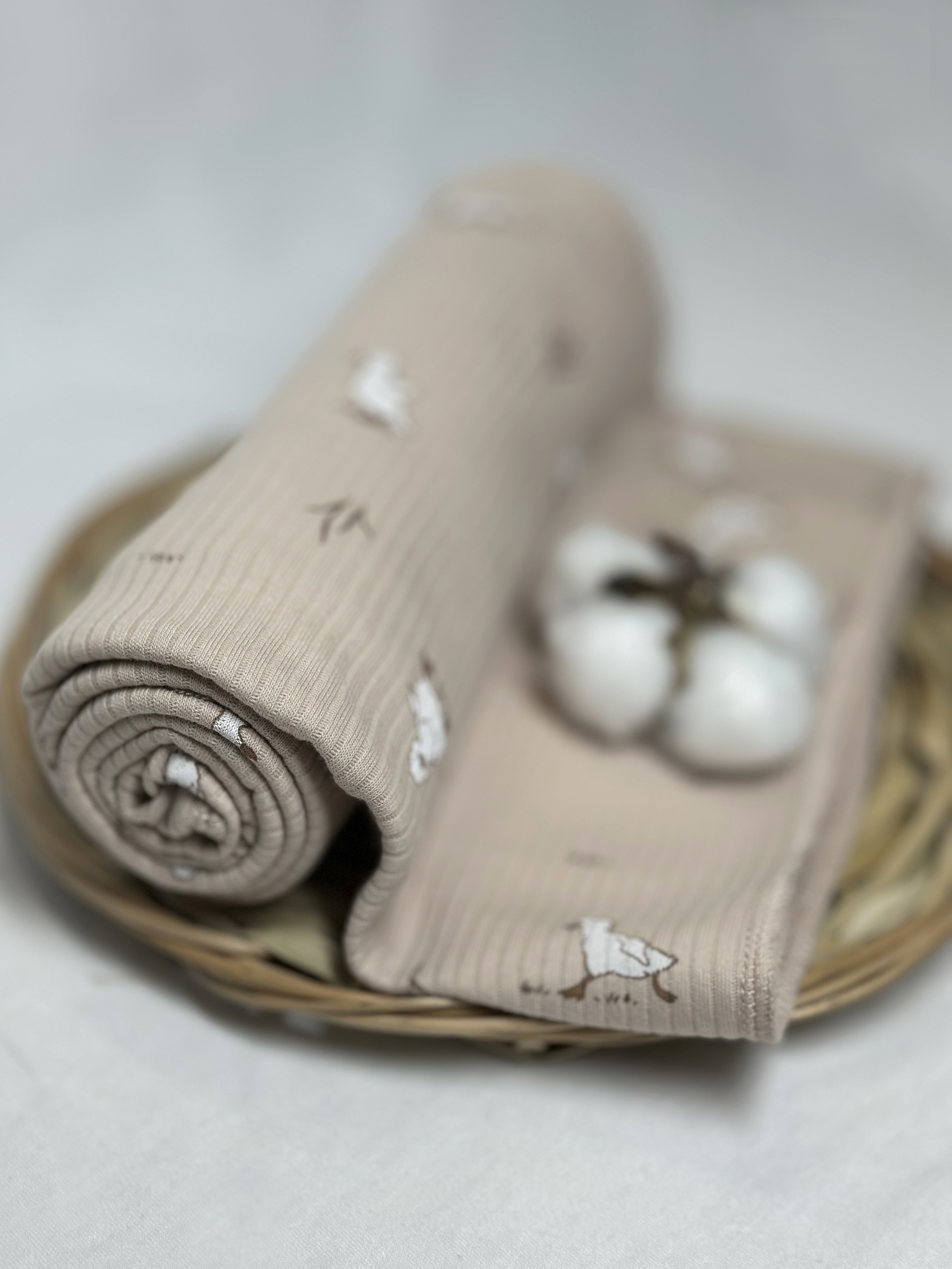 Пелёнка RinaAmari Утята Рубчик Светлый кофе, 85*130