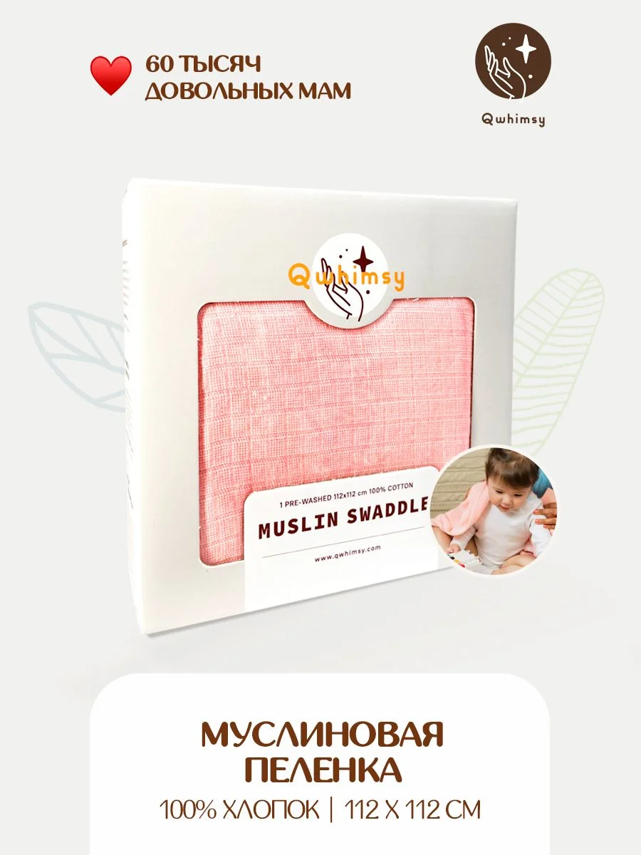 Материал и состав. В пеленках Qwhimsy используется 100% хлопок, а ткань пеленок Муслин. Это сочетание позволит сохранить здоровье вашего ребенка. Набор пеленок из муслина — это очень нежный продукт, который хорошо подойдёт для детской чувствительной кожи. Сама ткань очень легкая и хорошо пропускает воздух, благодаря этому, ребенок не вспотеет и не перегреется. Ткань пеленок износостойкая — она не теряет своих свойств при ежедневном использовании, а после стирки становится только мягче.