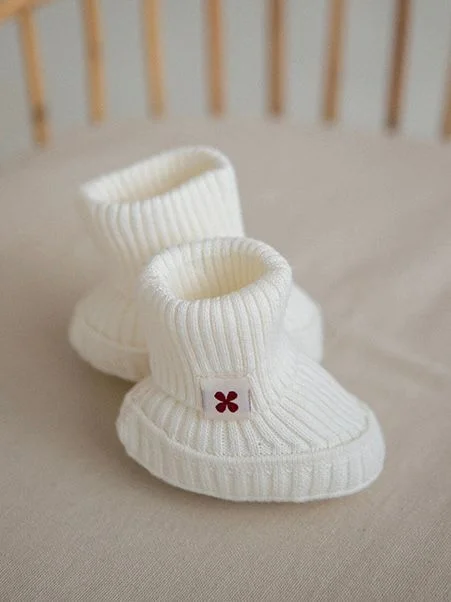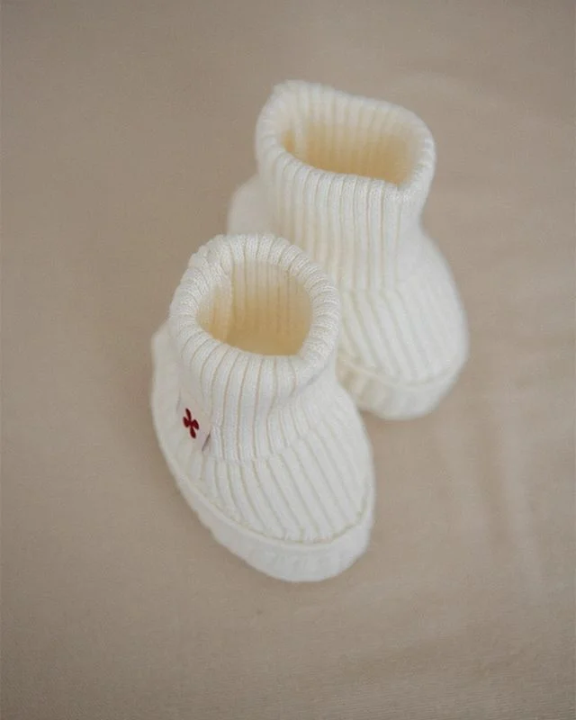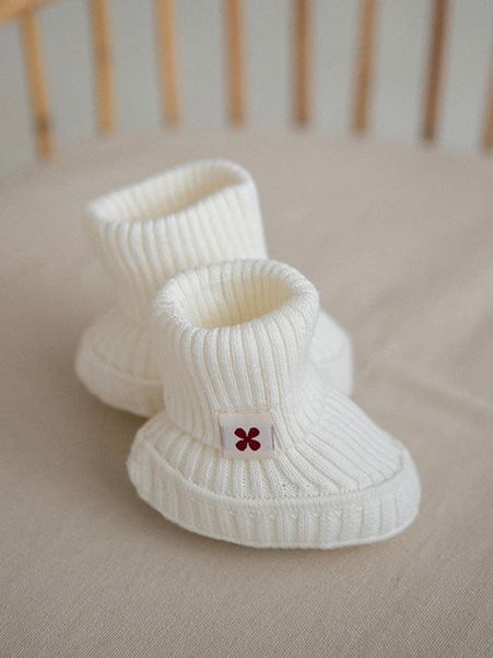 Пинетки связаны в рубчик из нежной хлопковой пряжи.
