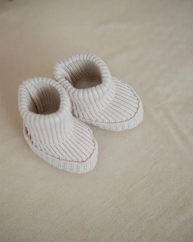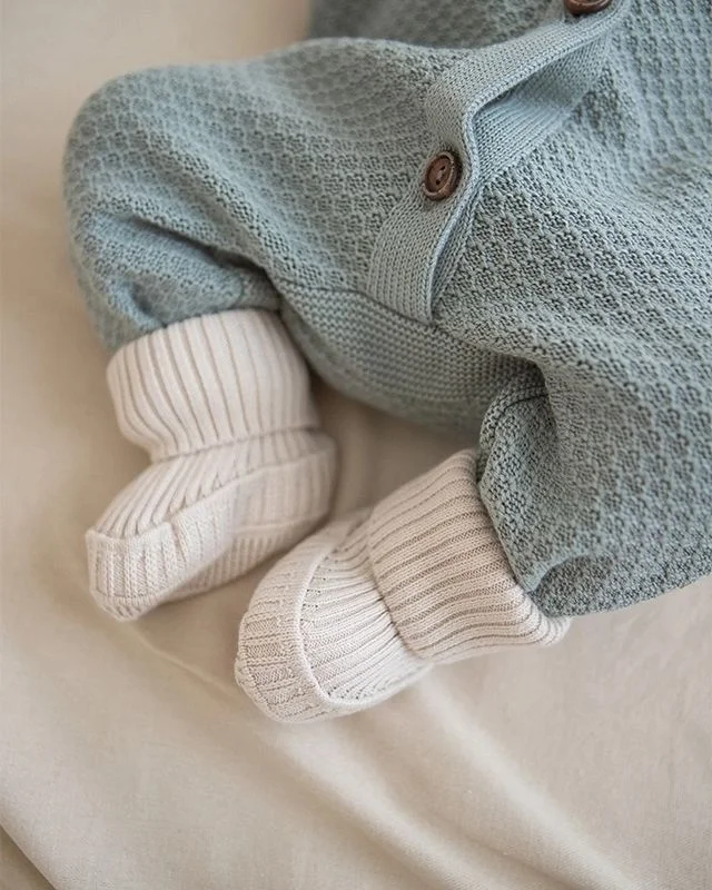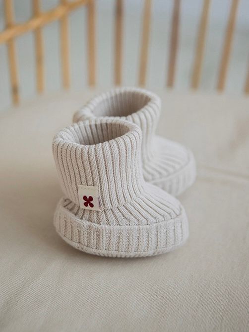 Пинетки связаны в рубчик из нежной хлопковой пряжи.