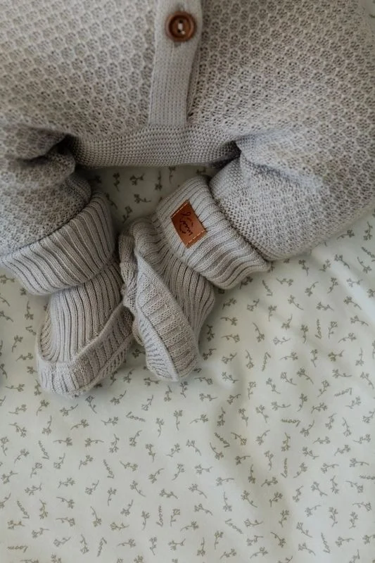 Пинетки связаны в рубчик из нежной хлопковой пряжи.