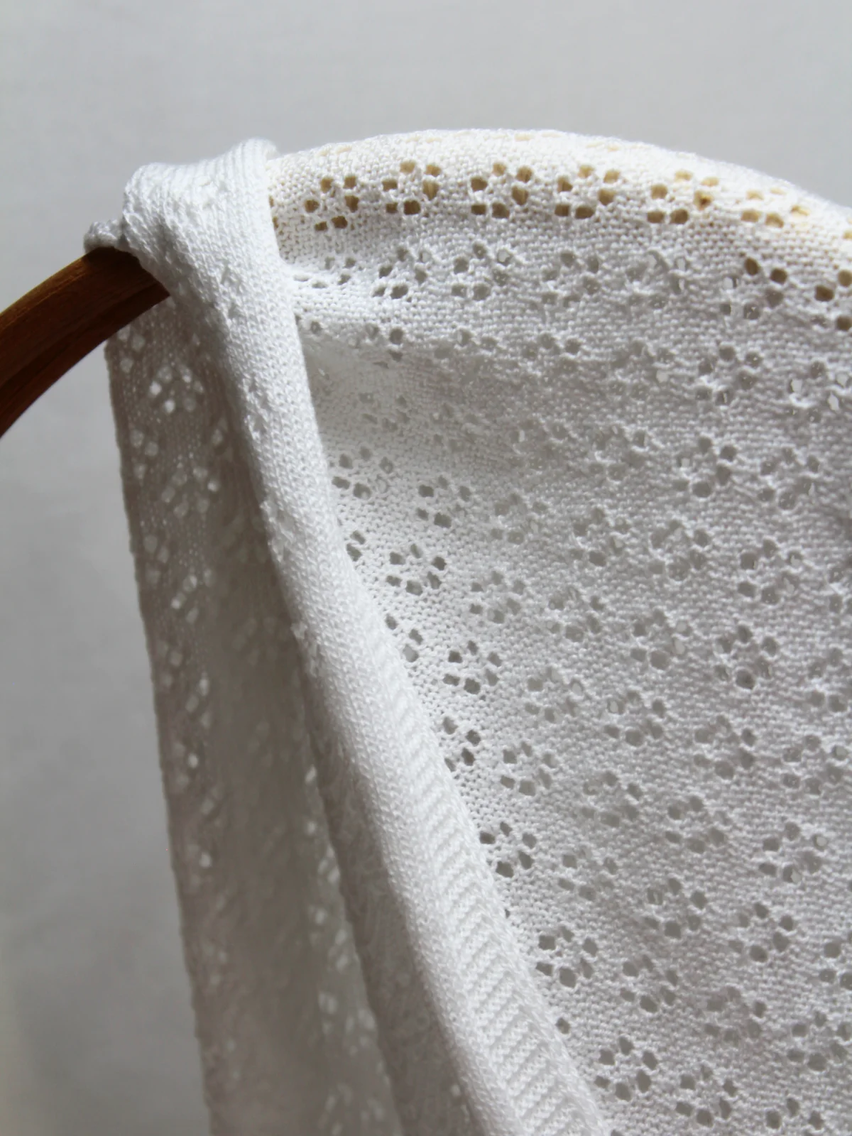 Вязаный плед "Плетёное облачко"- незаменимый предмет в гардеробе каждого малыша, который дарит тепло и уют. Плед выполнен из невероятно мягкой и воздушной хлопковой пряжи, невероятно легкий и в тоже время тёплый.