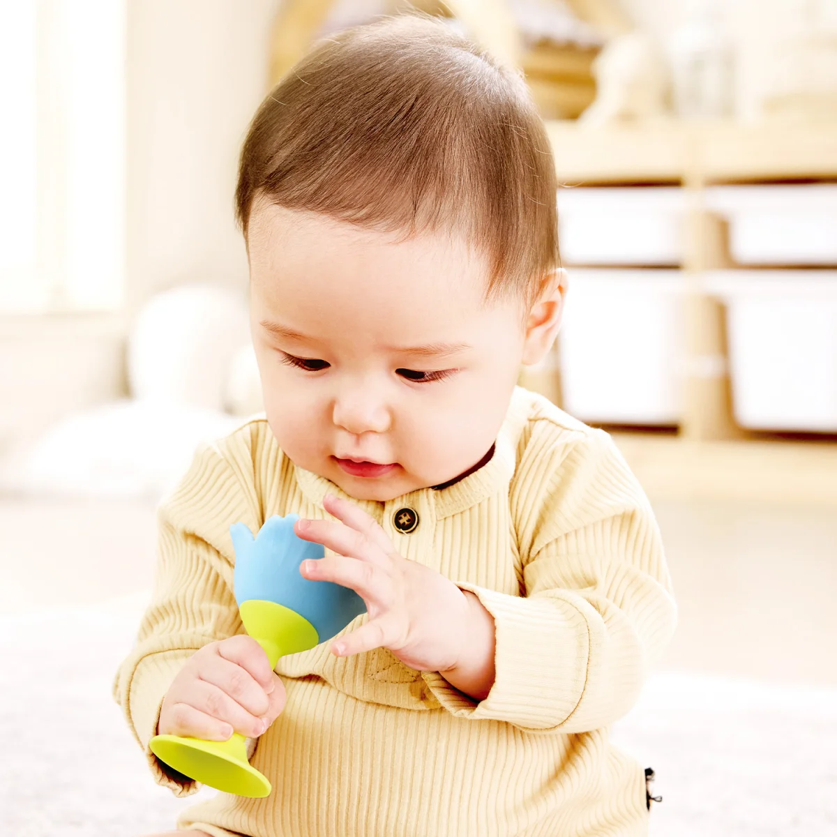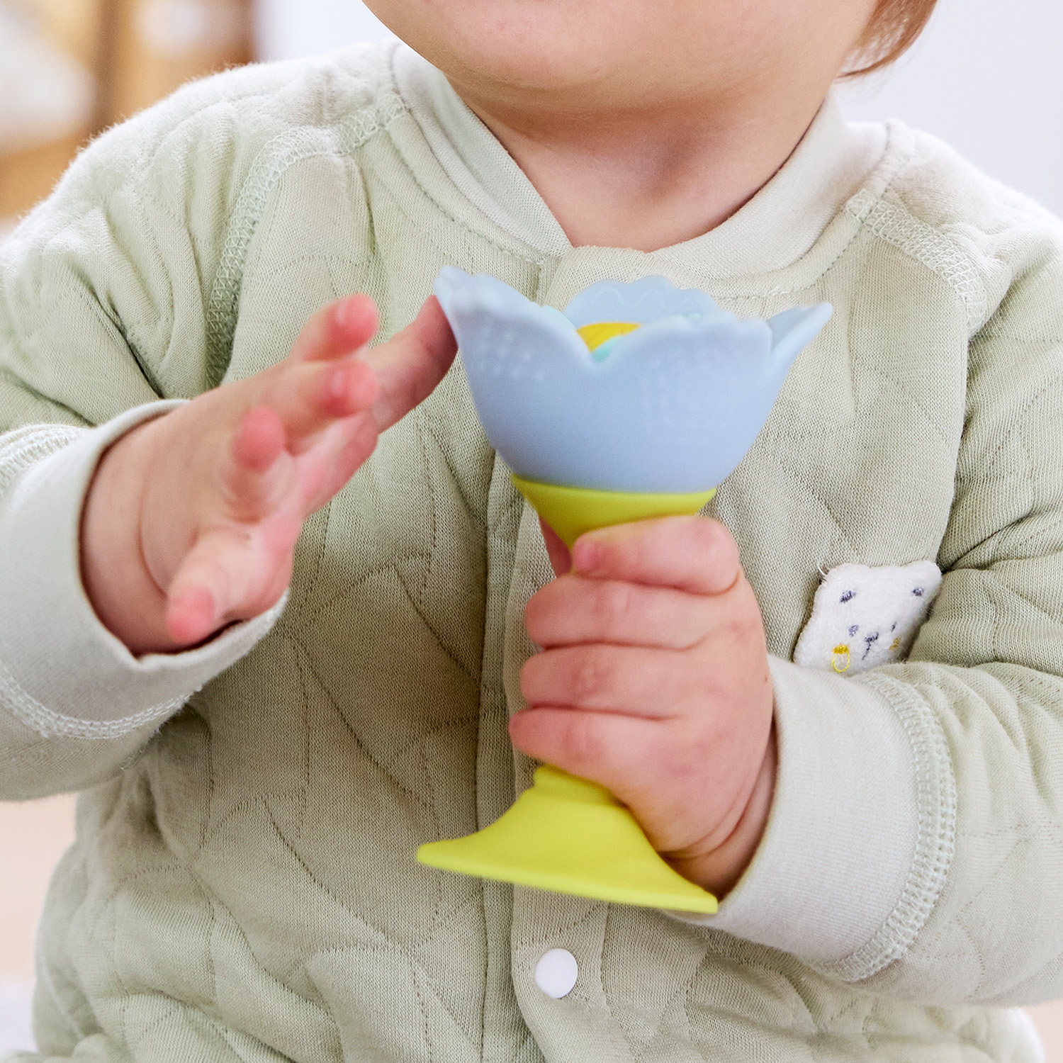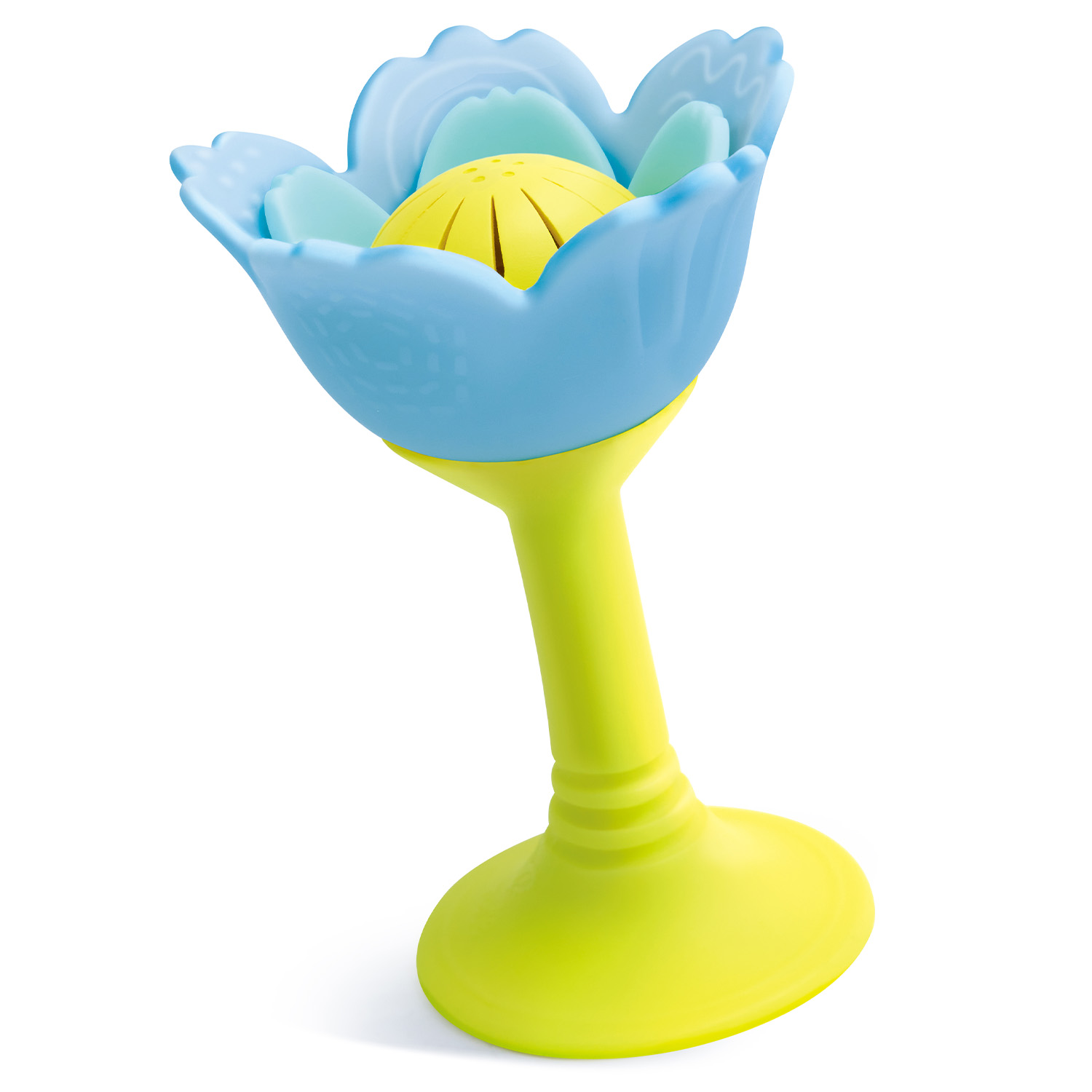 Погремушка "Малышам" Голубой цветок представляет собой оригинальную игрушку-трансформер, сочетающую сразу три полезные функции: погремушку, прорезыватель зубов и декоративный элемент интерьера.