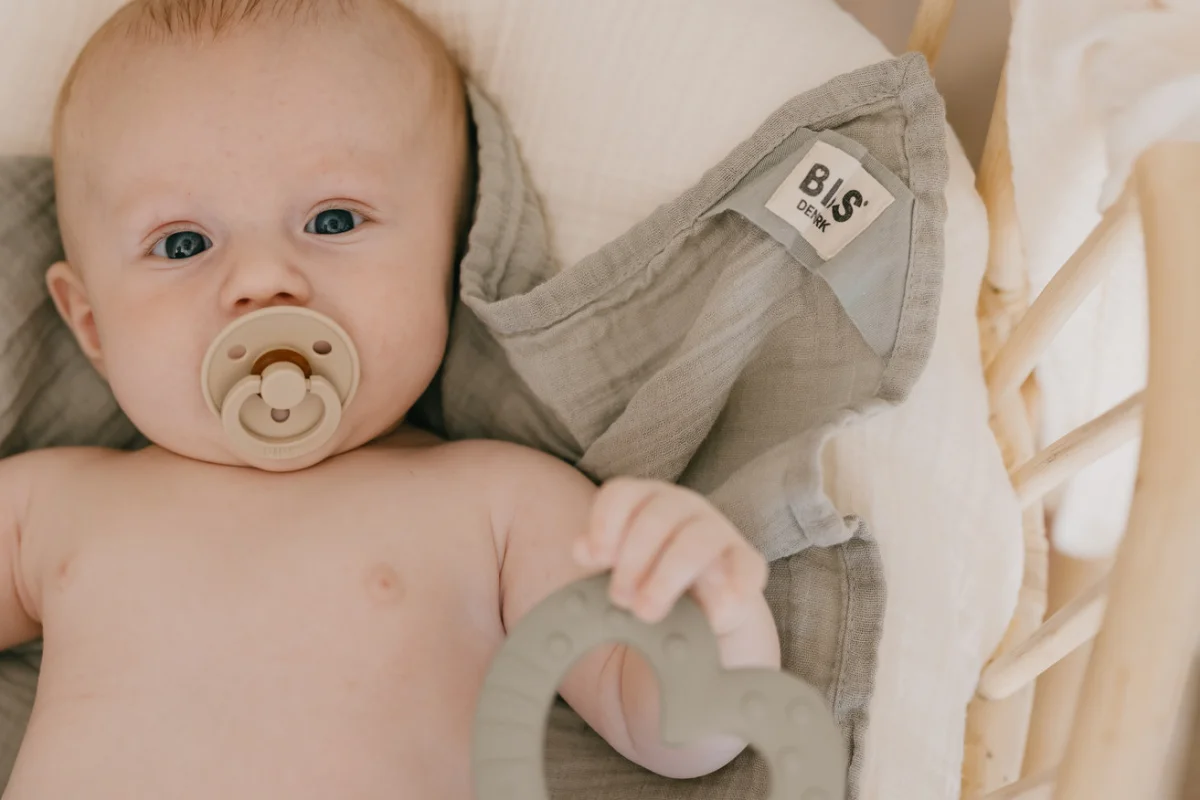 Пустышки BIBS изготавливаются из экологичных, на 100% безопасных материалов. Сосок у пустышки сделан из натурального каучука (латекса), а защитная накладка (шилдик) — из полипропилена. Изогнутая форма накладки минимизирует контакт с чувствительной и нежной кожей вокруг рта ребенка.