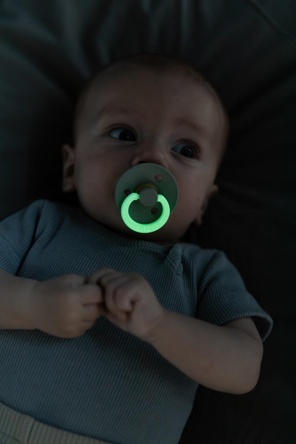 Пустышка Colour – это культовая пустышка BIBS, представленная на рынке с 1978 года. Колечко пустышки Colour Glow излучает мягкий свет и её легко найти в тёмной комнате. Достаточно двух минут под лампой, чтобы «зарядить» колечко. Свечение ему придают кристаллы люминофоров.