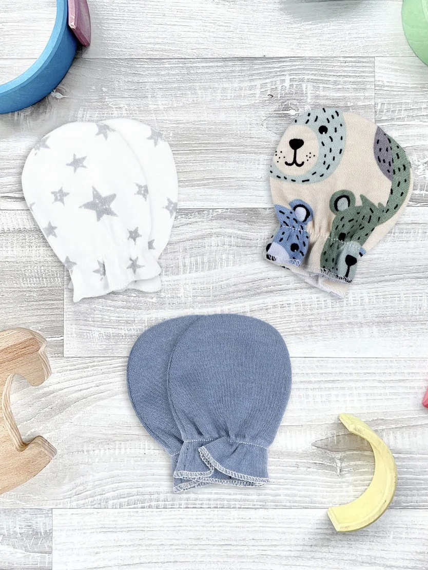 Рукавички-антицарапки Mjölk Grizzly Bears/Звёзды/Blue Shadow, сет из 3х пар
