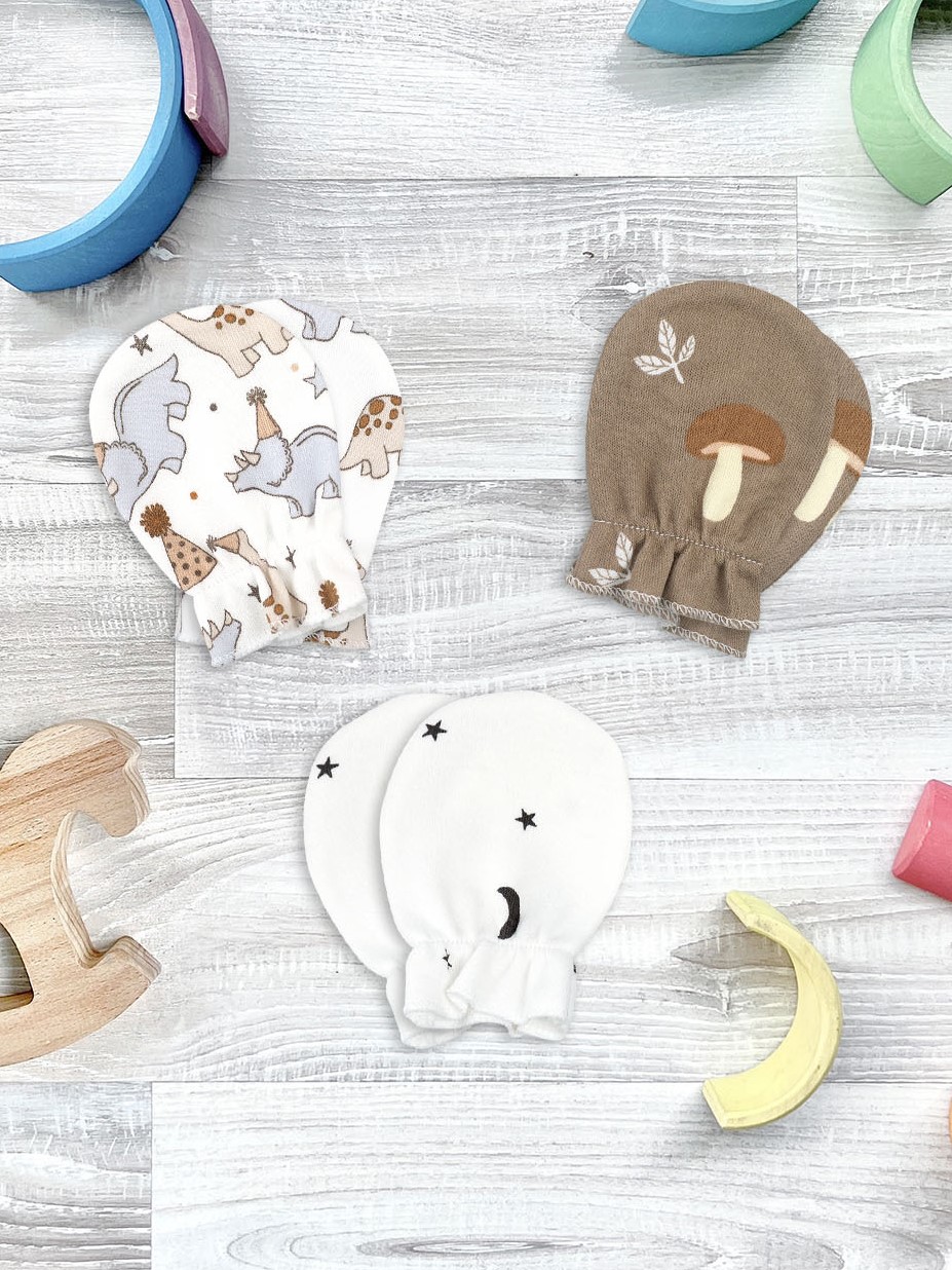 Рукавички-антицарапки Mjölk Карнавал/Ночное небо/Грибочки, сет из 3х пар