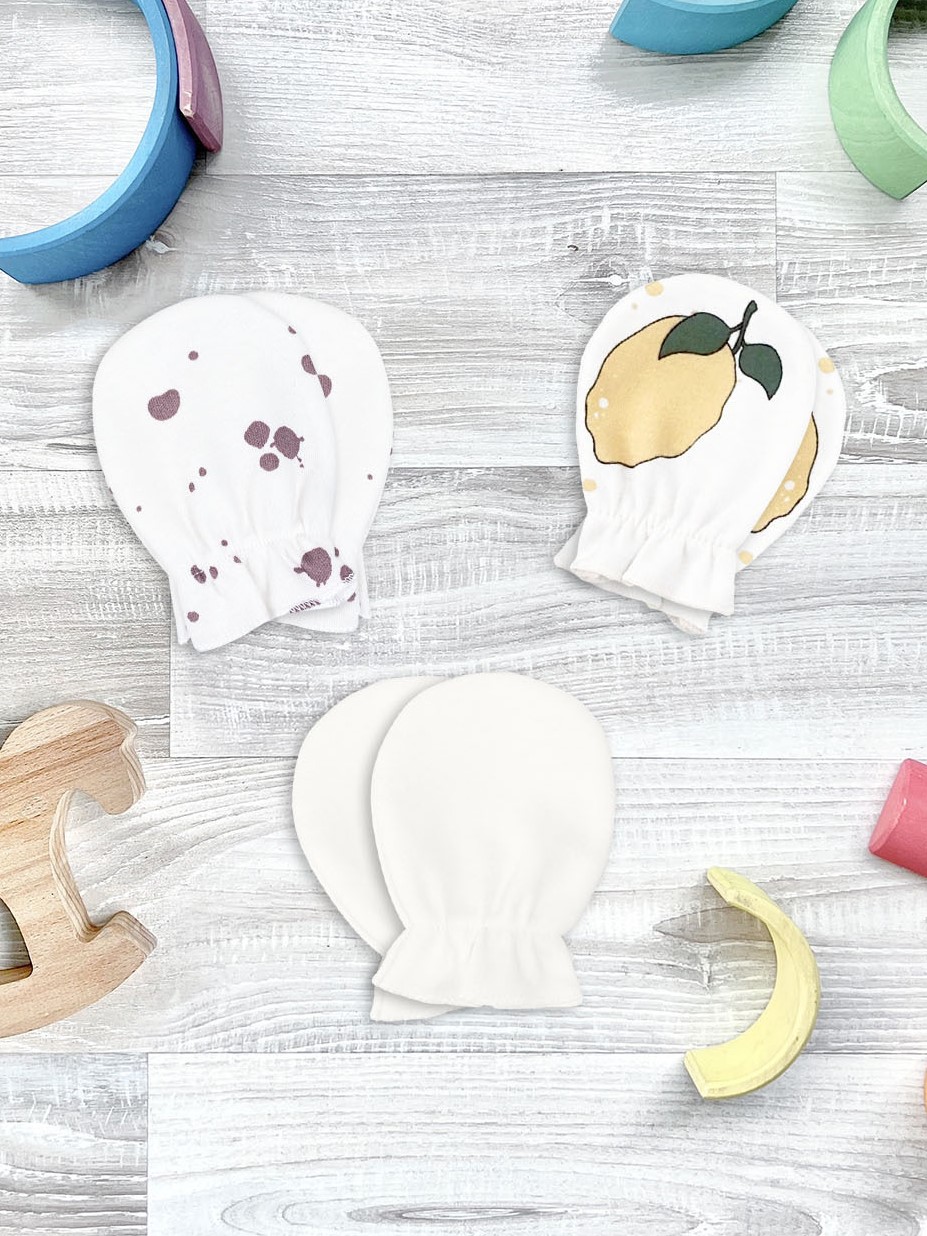 Рукавички-антицарапки Mjölk Лимоны/Кляксы/Экрю, сет из 3х пар