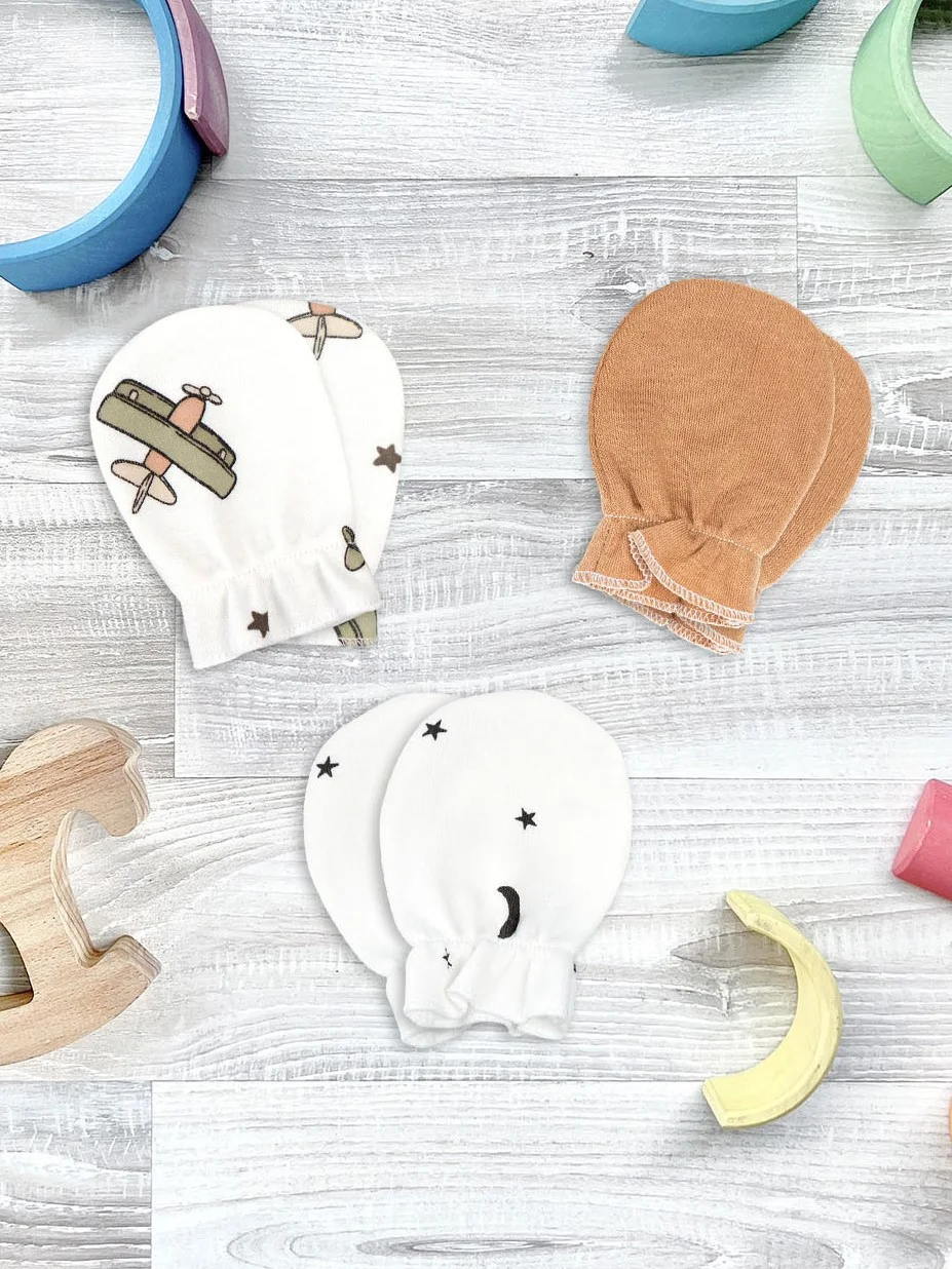 Рукавички-антицарапки Mjölk Самолёты/Ночное небо/Camel, сет из 3х пар