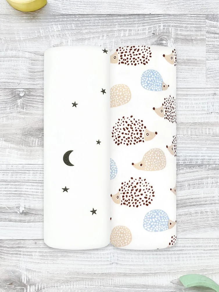 Сет из 2х пелёнок Mjölk Ёжики на экрю/Ночное небо