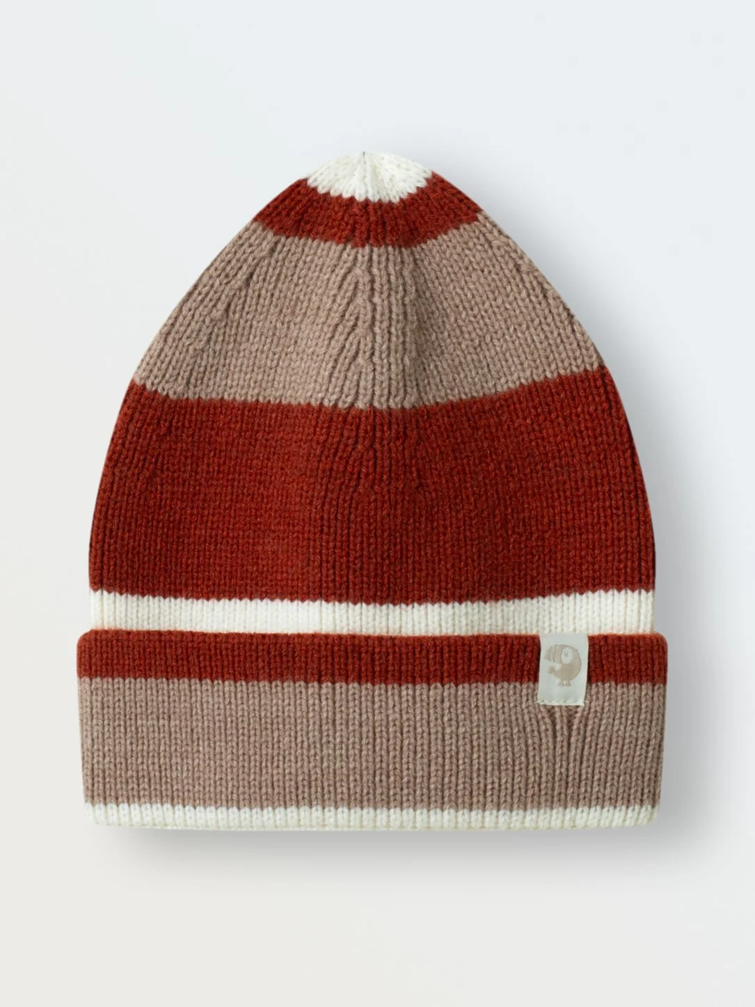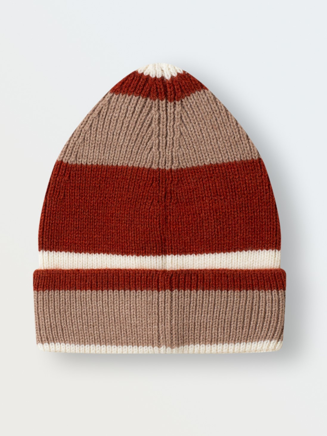 Шапка вязаная с отворотом, Тёплый беж + терракот